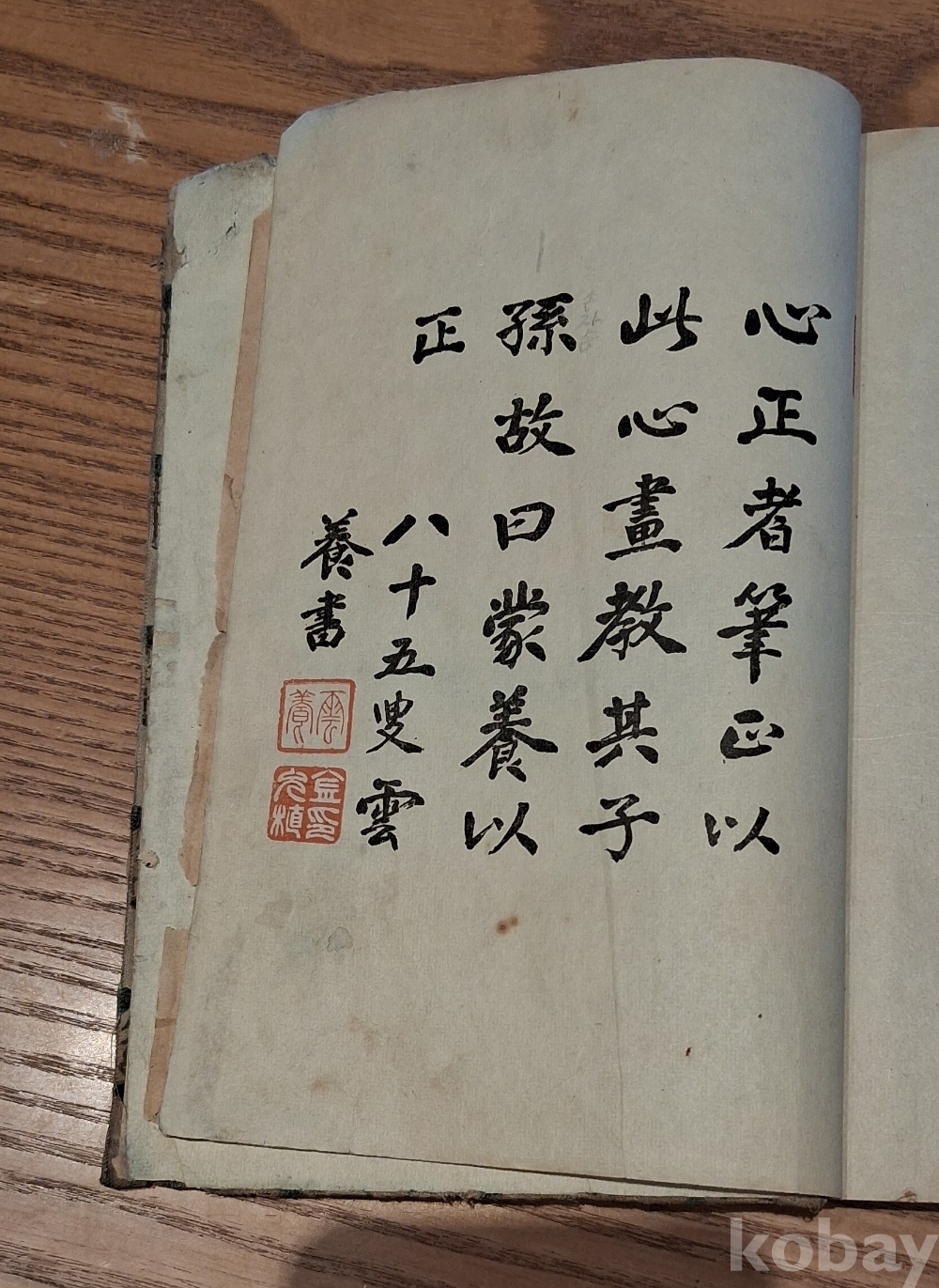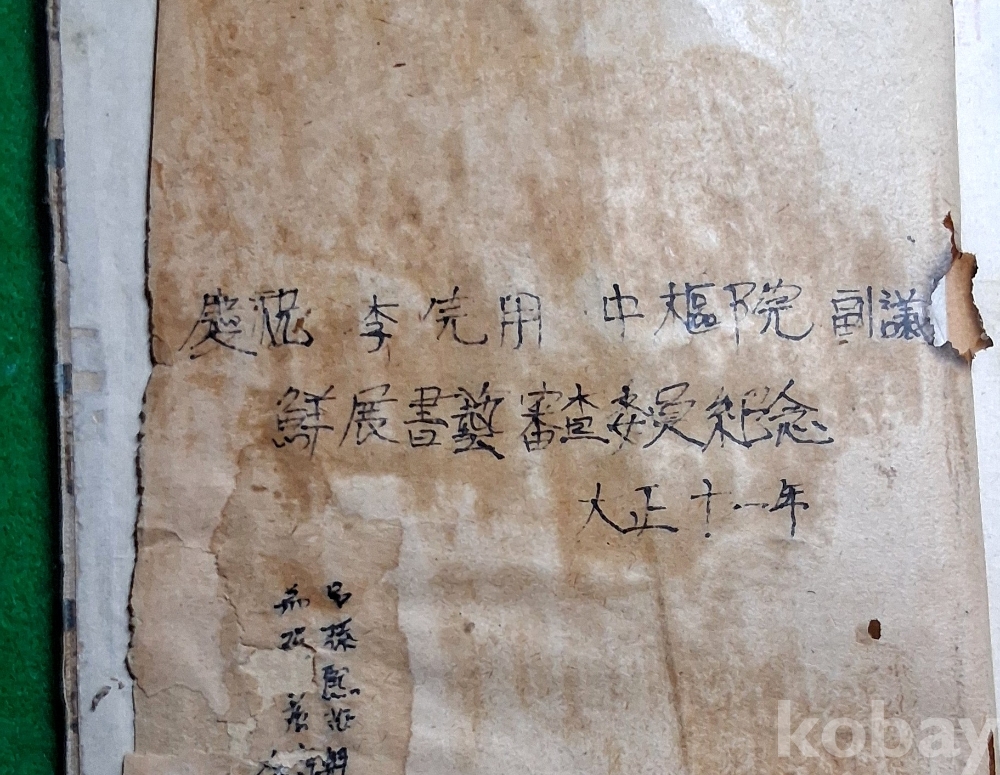*책 맨뒷장에 쓴 필사 메모는 ㅡ 이완용이한테 책을 받은 사람이 ㅡ이완용이 鮮展서예심사위원이 된 것을 축하(慶祝)하는 기념 메모로 추정됨