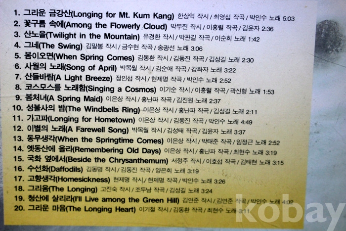 수록 곡 목은 사진을 참조하시기 바랍니다