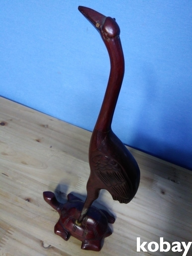 거북위에 학이 있는 나무 조각 형상 입니다.