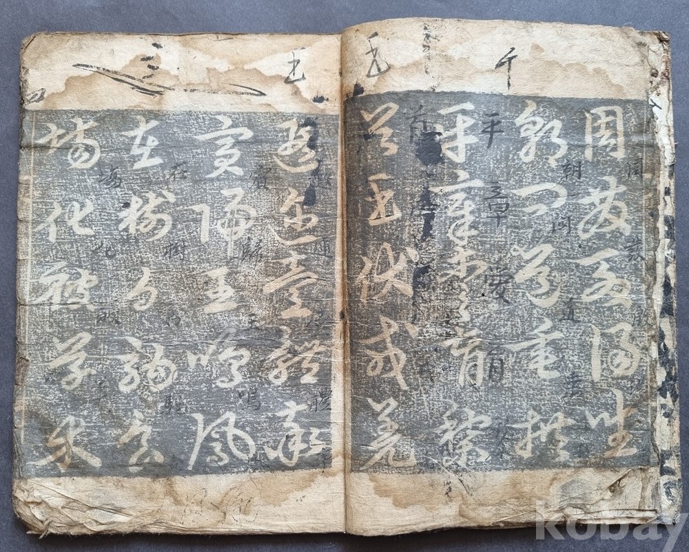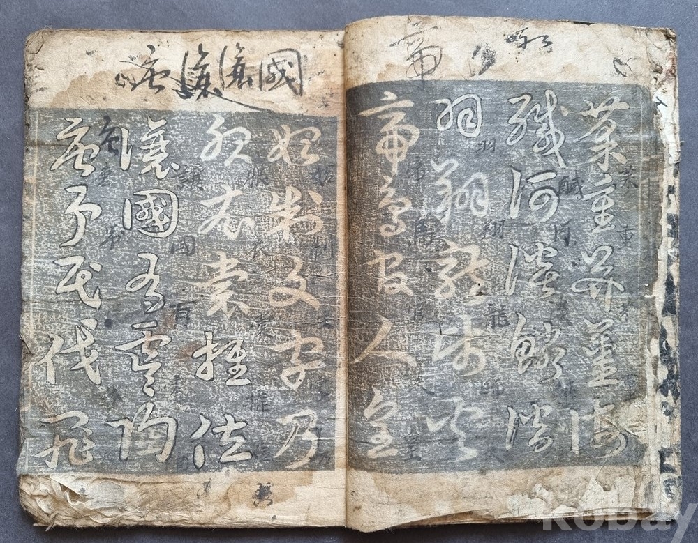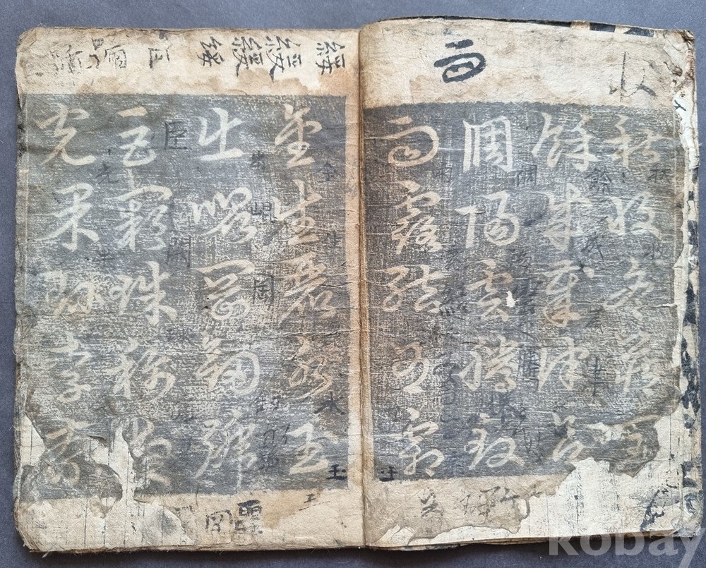 표지와 내지에 세월의 흔적(마모, 오염)이 깊으나, 본문의 글씨 체계는 명확히 유지되고 있습니다.