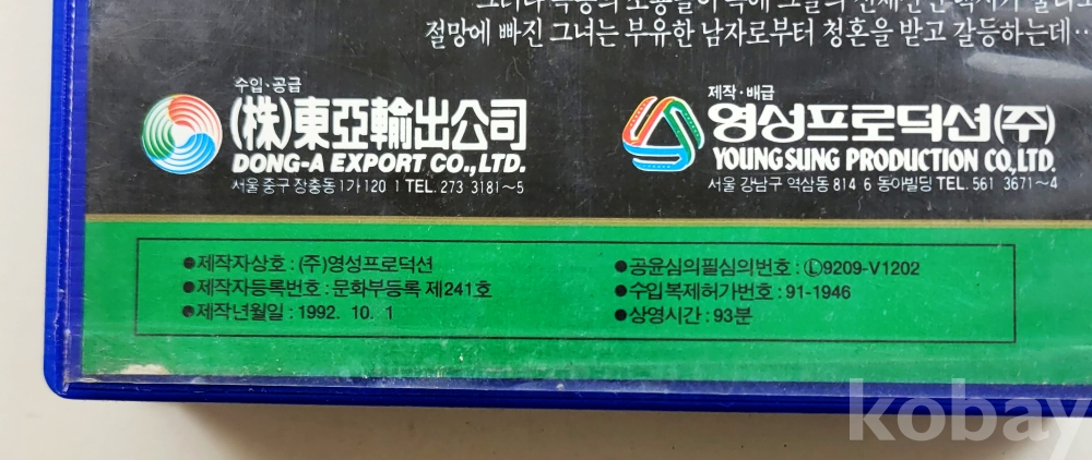 상 태 | 재생여부 확인 불가 및 재생상태 확인 안함. 간혹 보이는 비디오테이프에 발생한 곰팡이들은 세월의 흔적으로 필요하시면 관련업체에 의뢰하시어 세척을 하셔야 합니다. 단, 흰색곰팡이는 리와인드로 한번 돌려주면 제거가 가능하나 검정색곰팡이는 세척을 하여도 화면재생이 안됩니다. 그래서 각각의 비디오테이프의 오염상태를 사진으로 올리오니 보시고 참고하여 주시고 상태가 안좋은 것은 화질의 질을 떠나 비디오테이프 그 자체의 존재에 소장 의미를 부여하시는 분들만 입찰하여 주시길 권유합니다. 부득이 반품신청시 사전에 판매자에게 미리 연락주시기 바랍니다. 비디오테이프는 재생하는 기계의 상태에 따라 화질이 다를 수 있는 등 분쟁의 소지가 많은 품목입니다. 사전 연락없이 반품신청시에는 입찰제한자로 등록하겠습니다. 훼손 및 오염 정도(강,중,약,양호로 표시합니다.) - 케이스 & 삽지 : 약 / 라벨 : 약(미미) / 테이프 : 양호 / 곰팡이 : 양호 |
