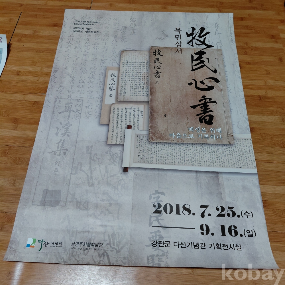 목민심서 저술 200주년 기념특별전 강진군 다산기념관 기획전시실 홍보 초대형 포스터 한장 올려드립니다