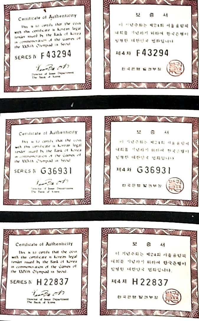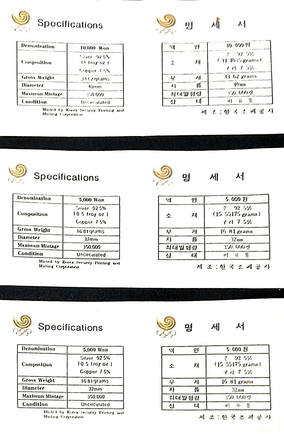 1988년 제24회 서울올림픽 기념주화 5종세트