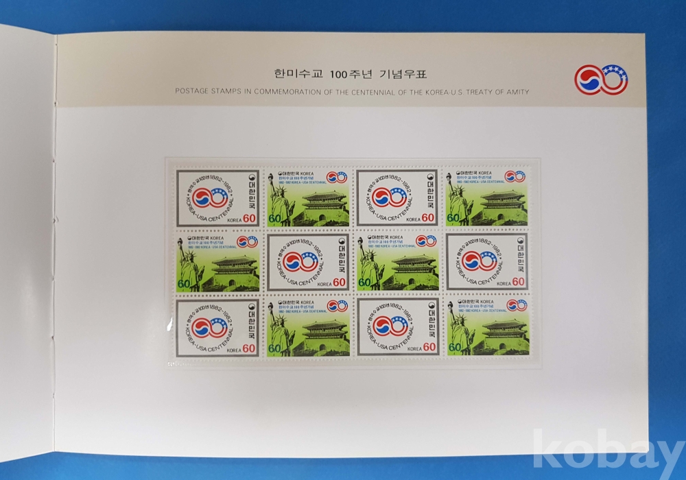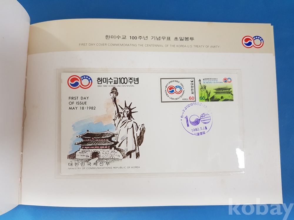 한미수교100주년기념 우표책 (1982년)*우표 23매, 초일봉투 1매 첩부