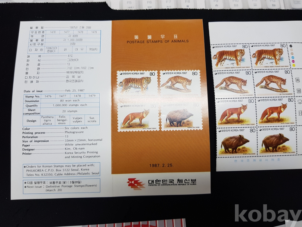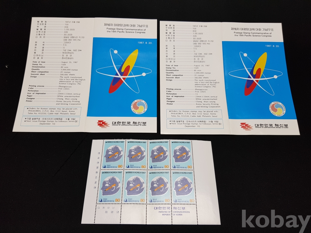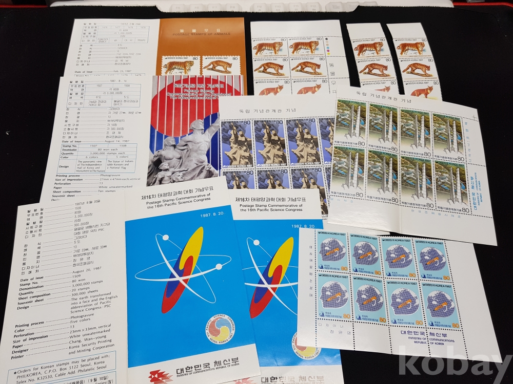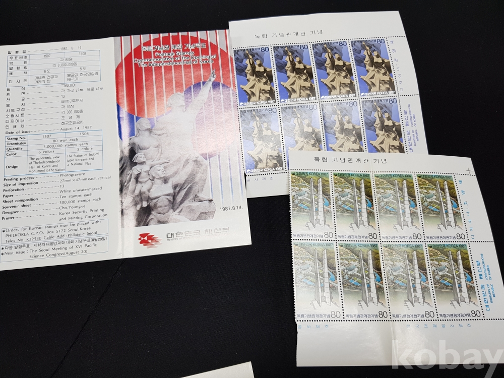 - 1987년 기념우표 시트, 명판, 안내카드 등 모음