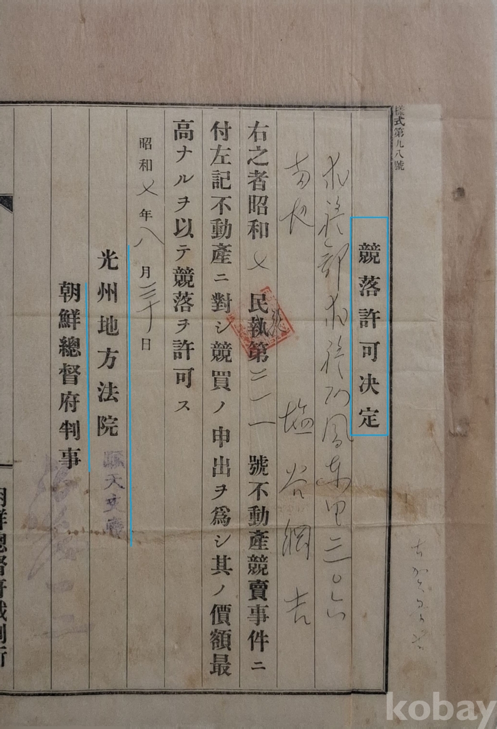 ◈ 소화 7년 8월 30일에 광주지방법원 순천지청 조선총독부 판사가 내린 결정이다.