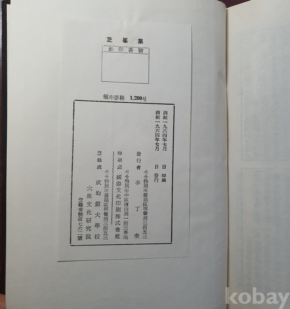 이수광,성균관대,1964년 초판,상태는 양호 깨끗한 책,하드커버