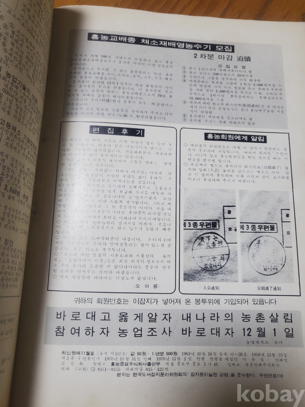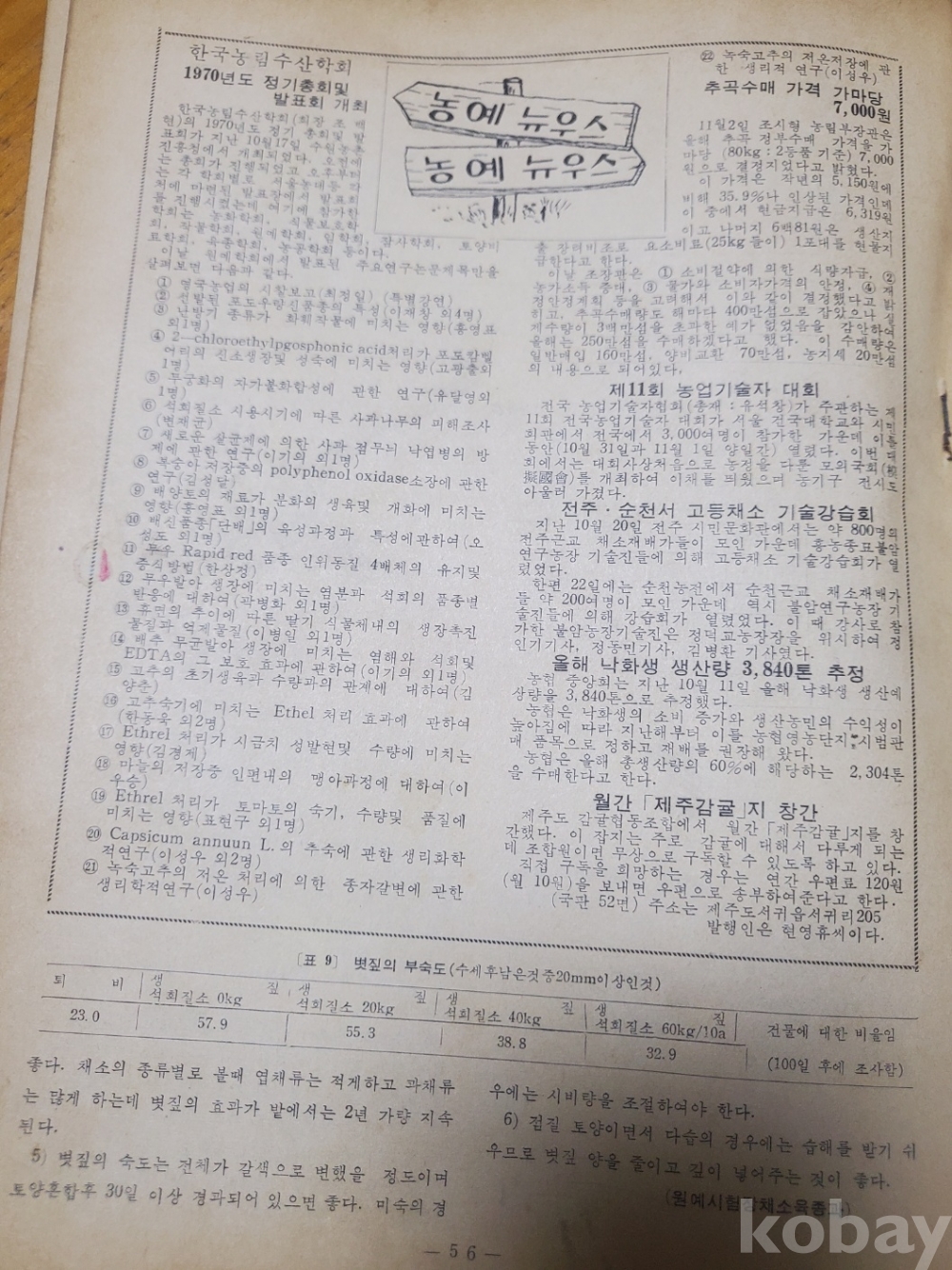 1. 월간 최신원예 통권 107호, 흥농종묘주식회사, 1970년, 56쪽, 상태 상, 사진 참조