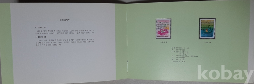 제24회 서울올림픽대회 13매, 한국의 풍속 16매, 음악시리즈 4매, 근대미술시리즈 4매, 과학시리즈 4매, 조류 9매, 어류시리즈 6매 수록