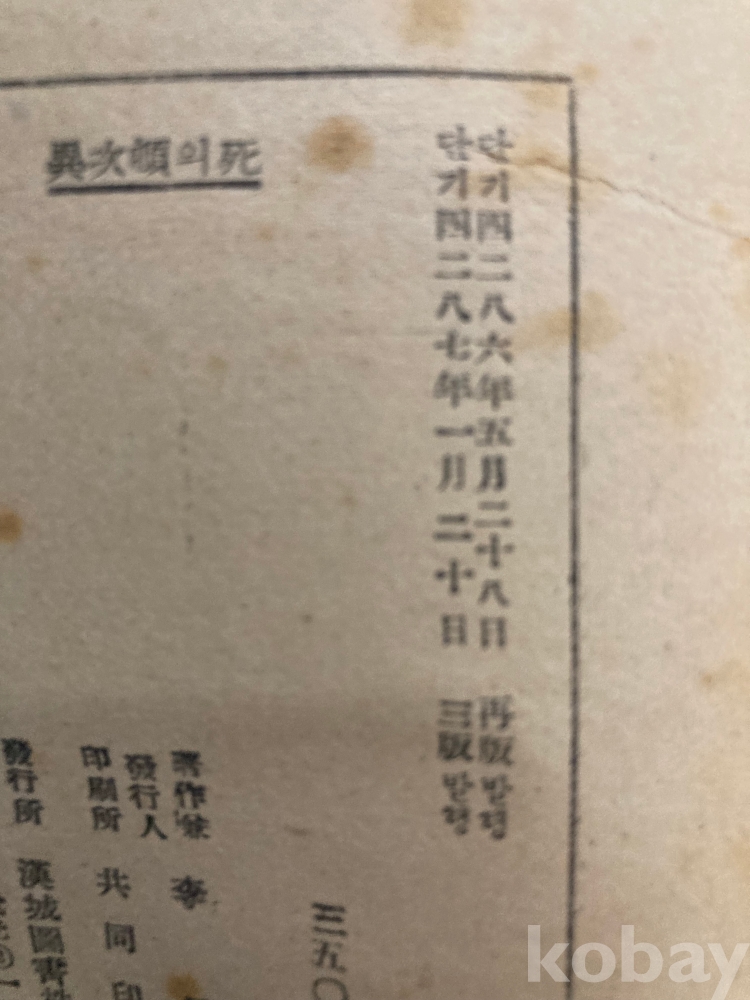 본 도서는 단기 4287년(1954년) 1월 20일 발행본으로,