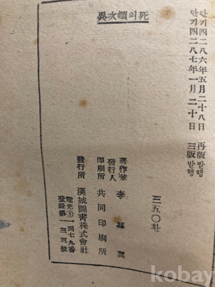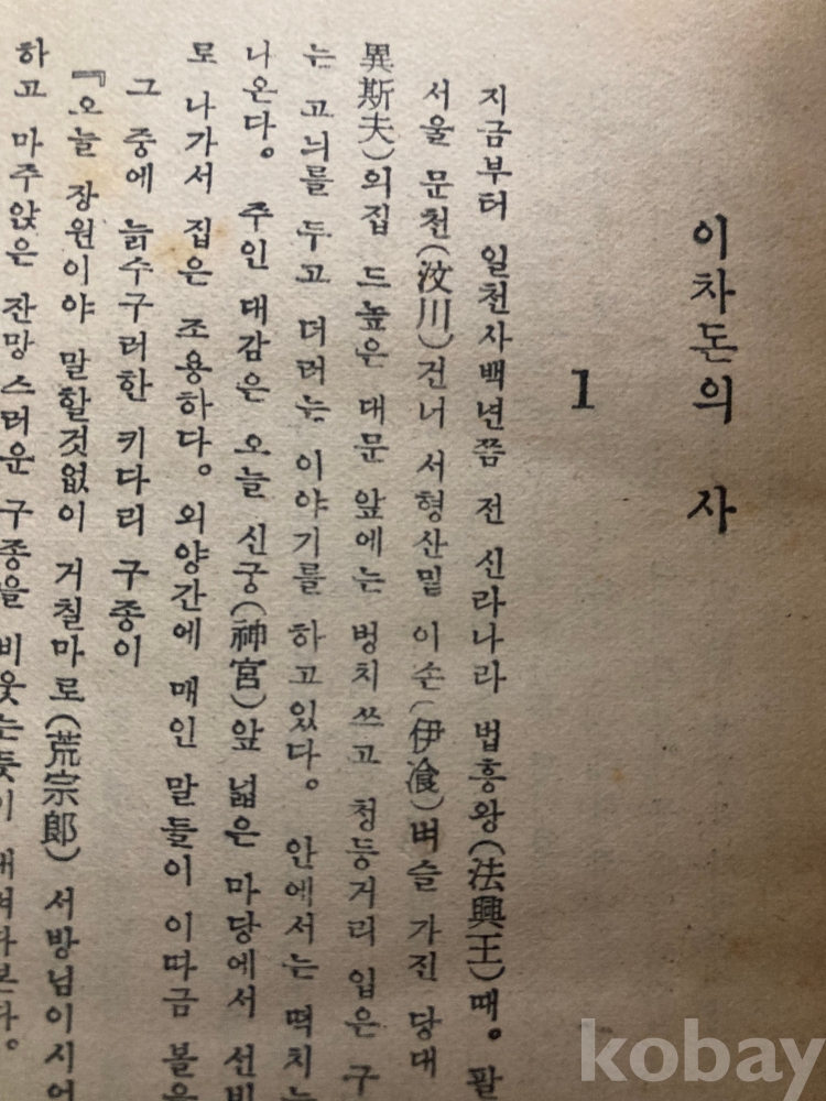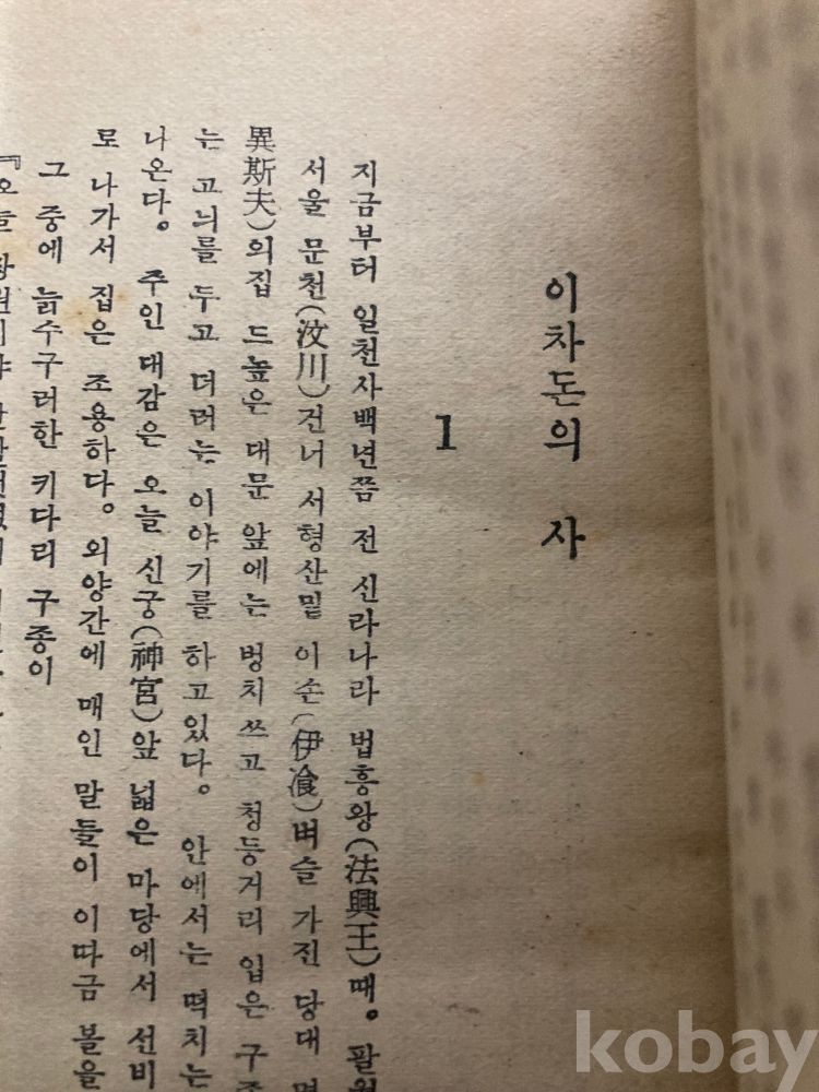 이광수의 역사소설 『이차돈의 사(異次頓의 死)』 삼판본(1954년)입니다.