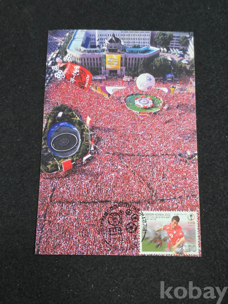 (((우편엽서/사진엽서/월드컵자료))) 2002 FIFA 월드컵 우표부착 월드컵전사 칼라사진 엽서 (기념인소인)