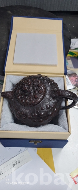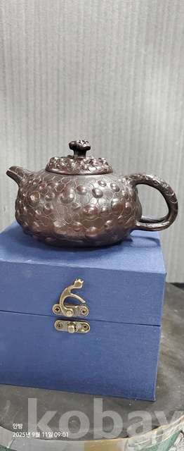 b-115.고급상자에담긴 중국유명도예가 천자령의 호박문양자사다관