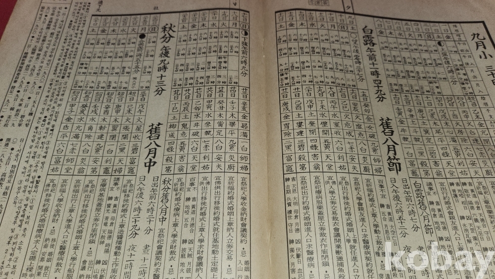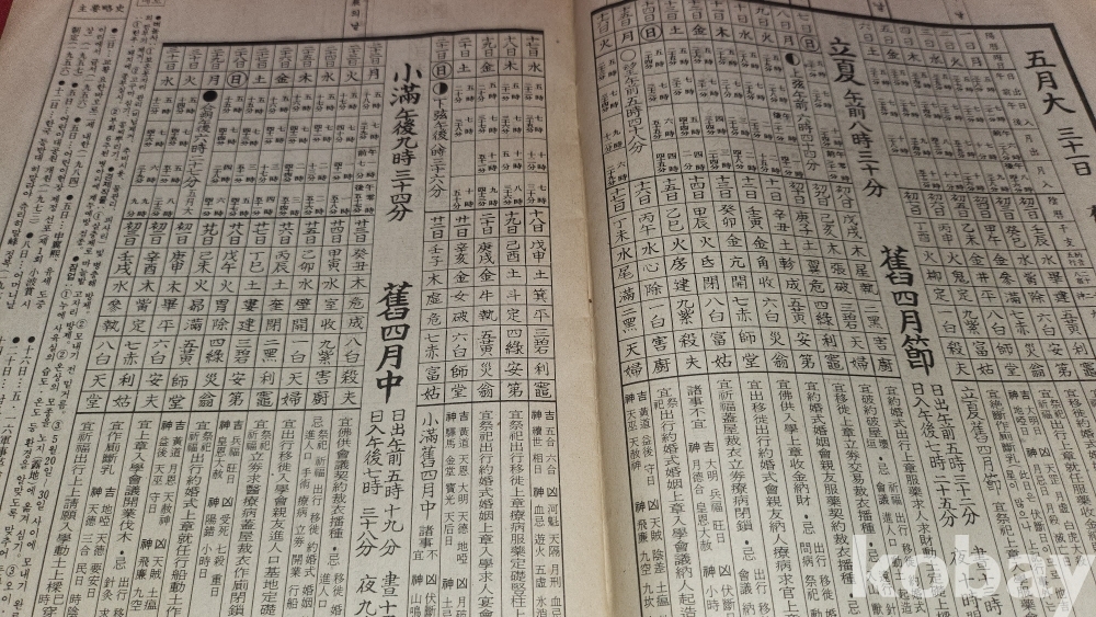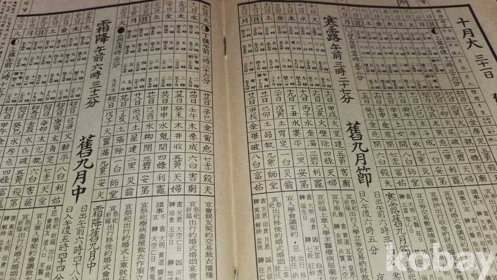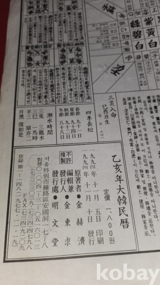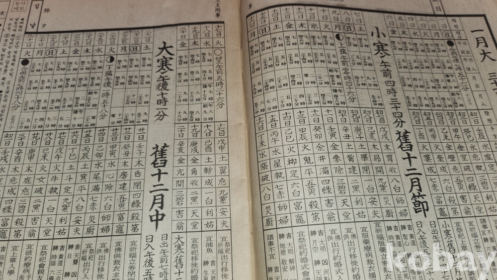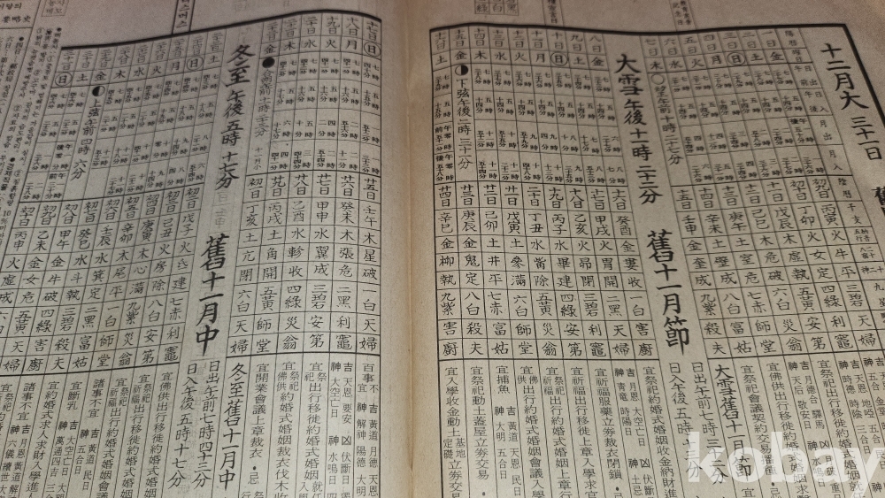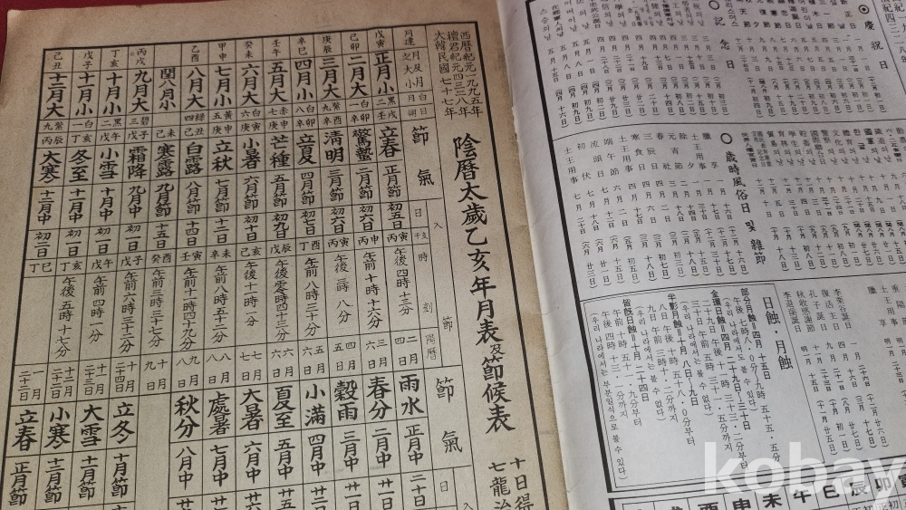운세 절기 국내외 사건 용약 같은 생활 자료도 함께 수록된 전통식 역서(歷書)입니다,