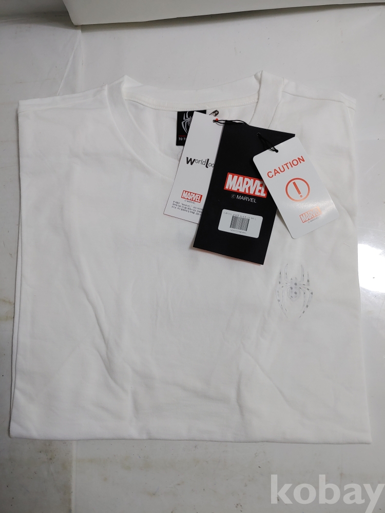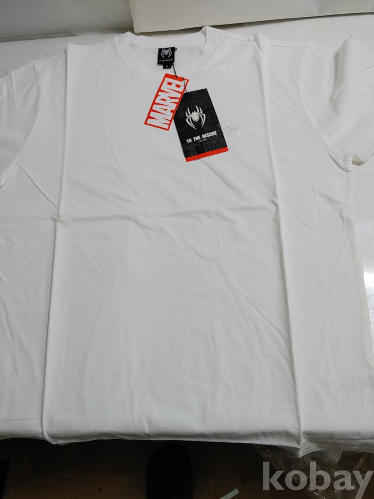 ★천원출발★ L-4-332 마블 스파이디 오버핏 흰색 반팔 티셔츠 (L)