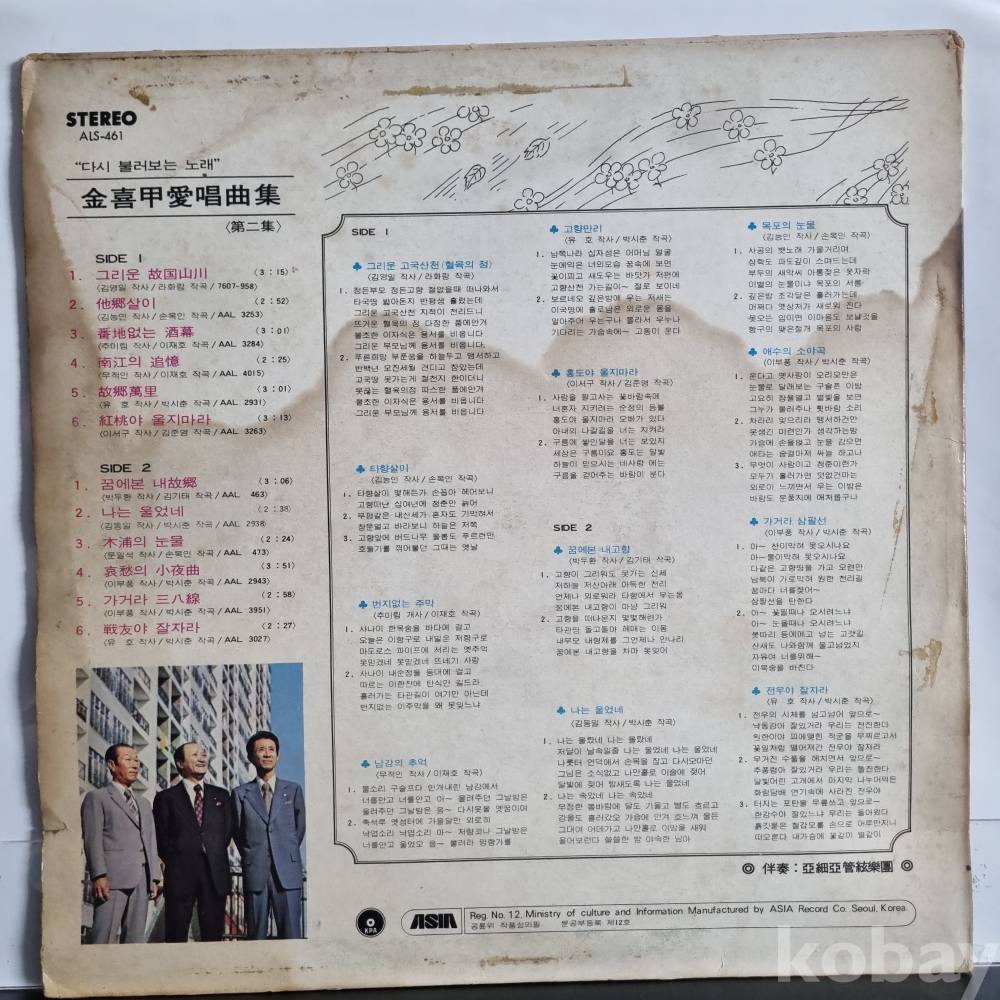 | 자켓상태 | VG : 주름, 접힘, 모서리 찢김 다수 | 음반상태 | EX : 재생에 영향 없는 가벼운 기스 존재 | 발매정보 | 알수없음 | 가사지여부 | 무 |