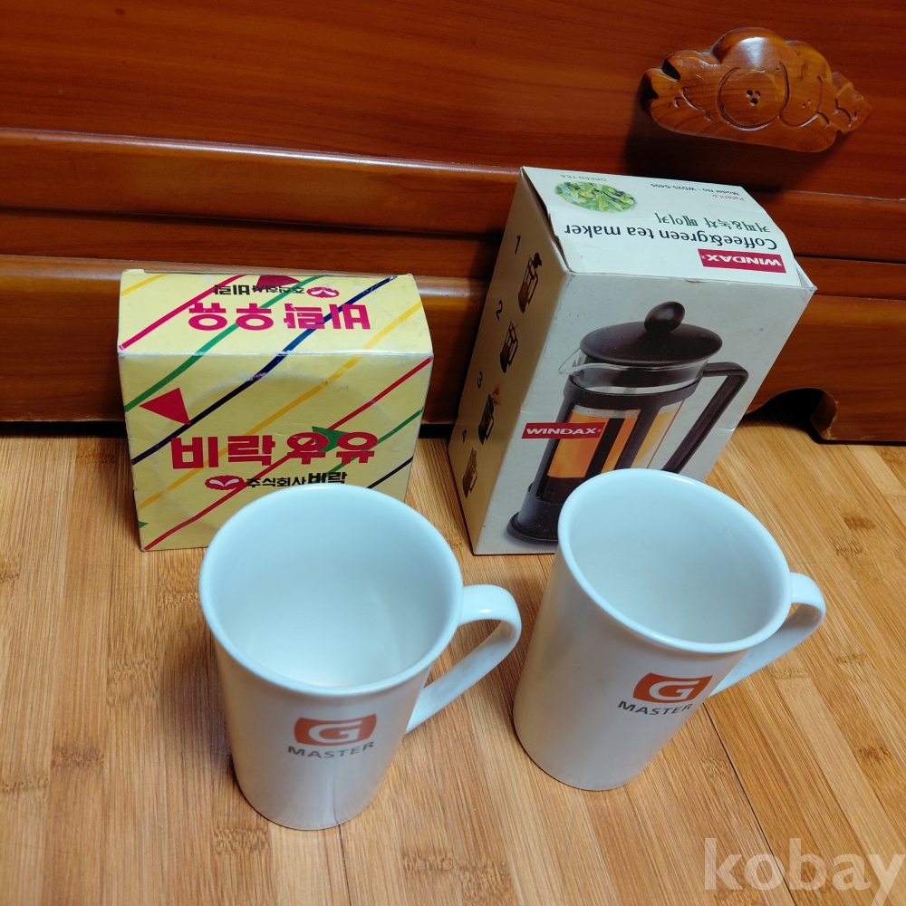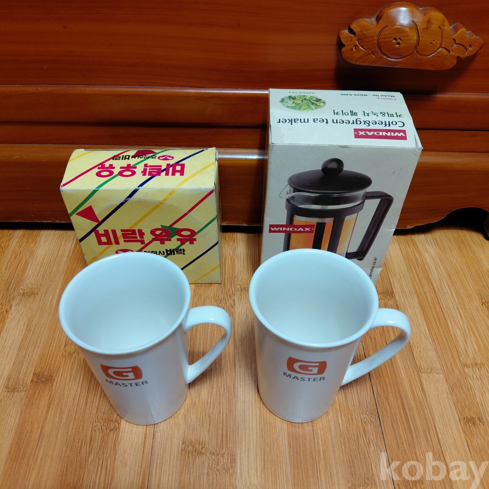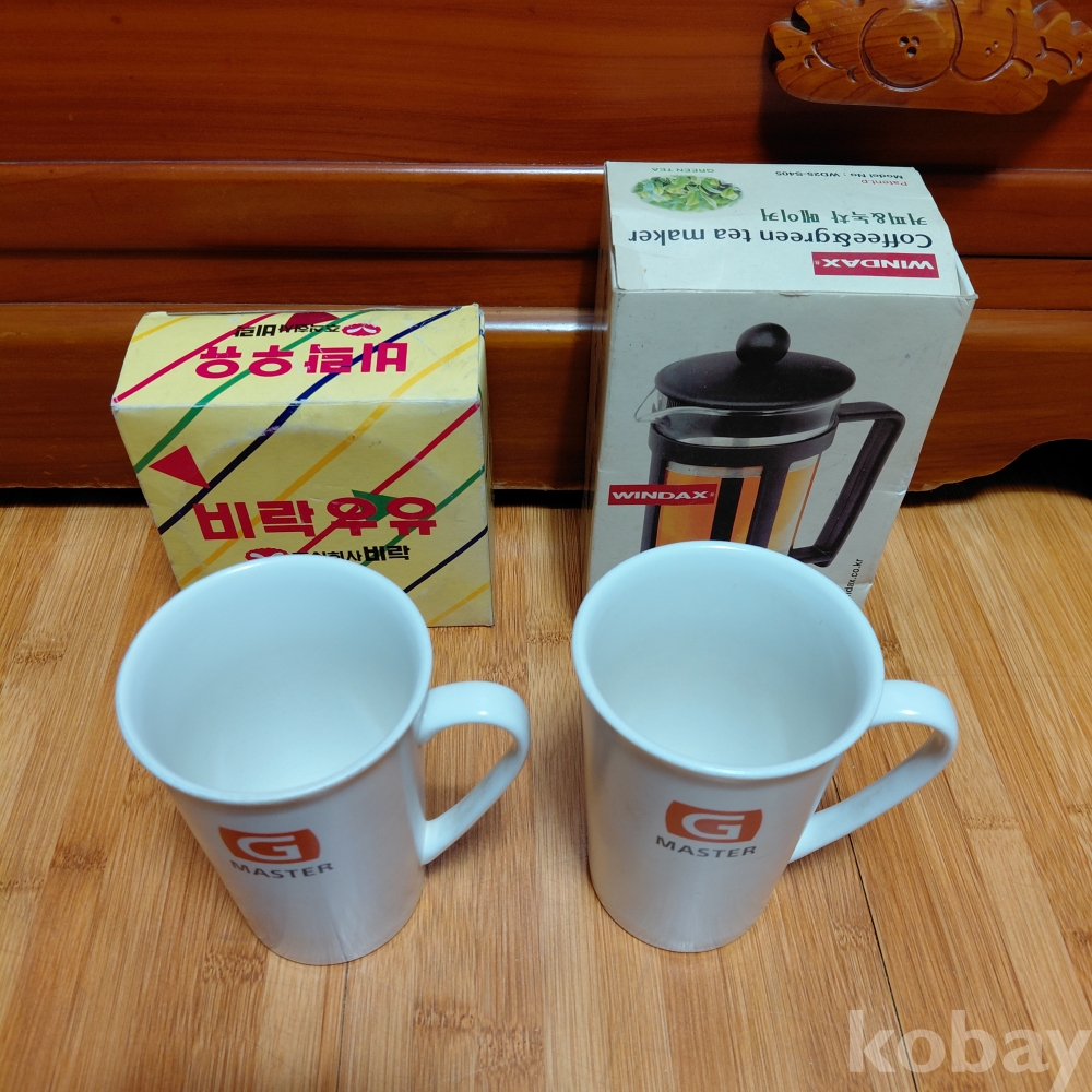 커피 녹차 메이커 미사용 비락우유 증정용 용기 ㆍ브랜드 증정용 도자기컵 미사용 총 네점일괄 올려드립니다