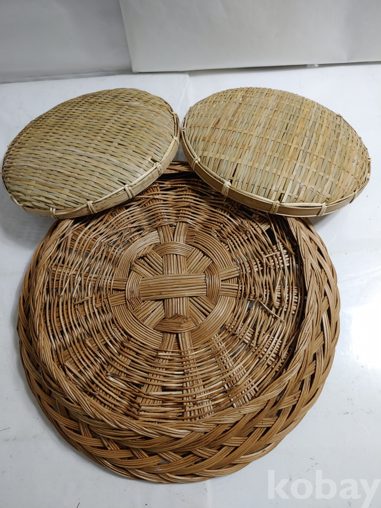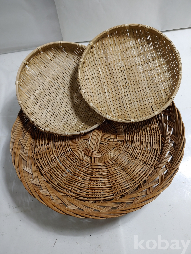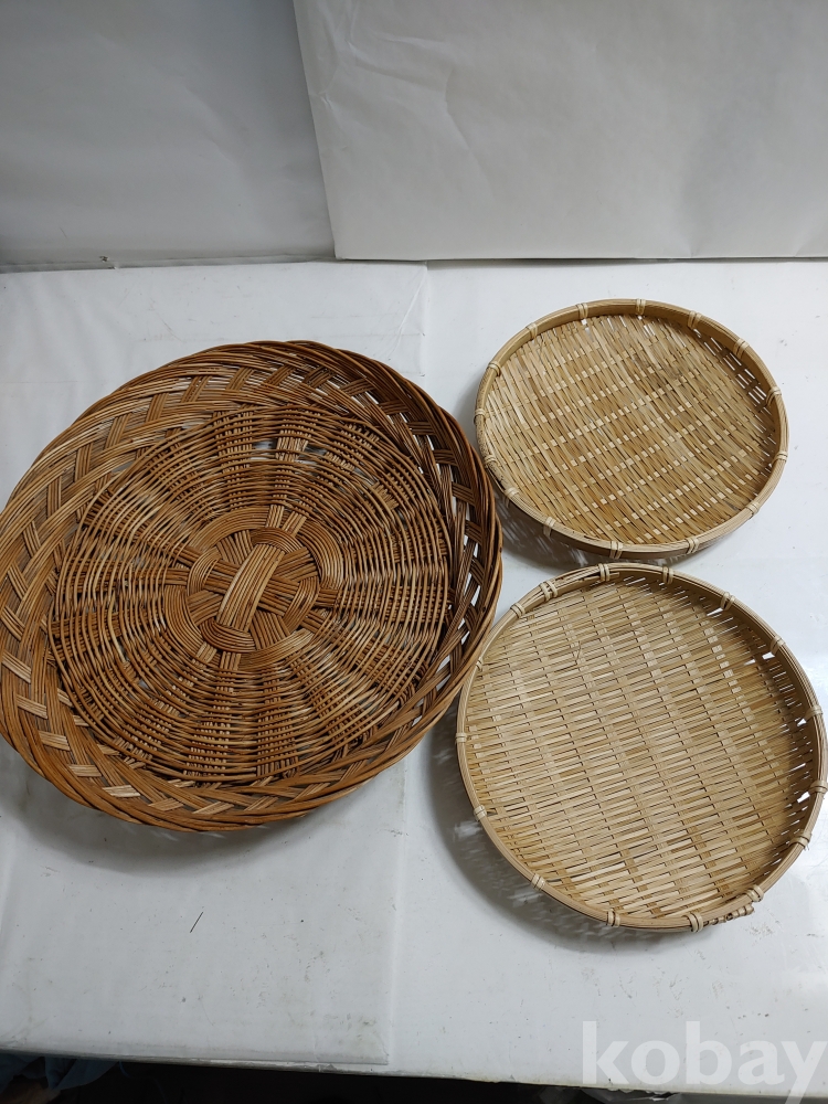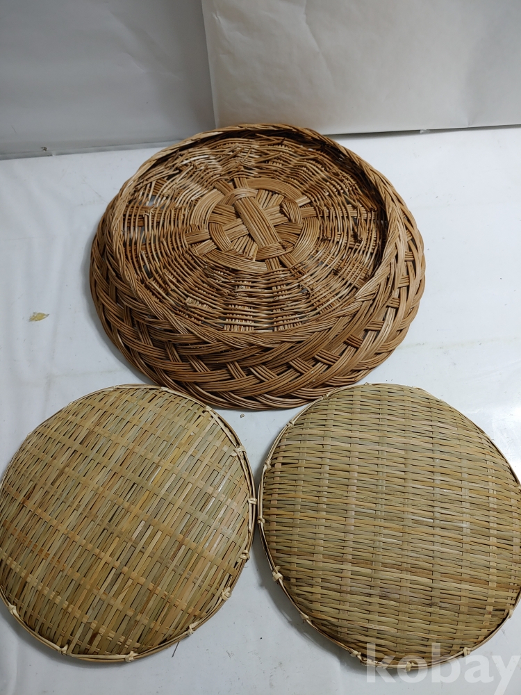 ★천원출발★ P-4-095 싸리나무 채반과 대나무 채반 (30*39*9, 지름 25cm 2개)