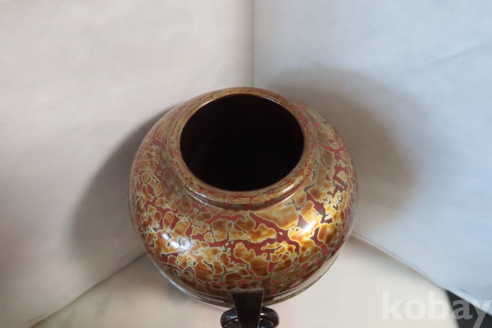 일본 칠기 화병 임니다 대단한 기술력과 우아함 무개감 등등 당대의 명품 임니다 무개감이 대단하며 움직이는 고리 처리 질리지않은 문양 등등 일본 에서 만든 당대의 명품 임니다