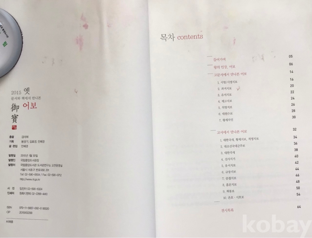 [X62] <<옛 문서와 책에서 만나본 어보>> / 국립중앙도서관 편, 2015. 초판