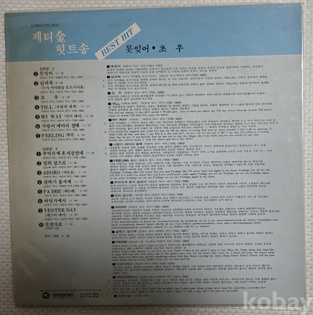 | 제조국 | 한국 | 발매연도 | 1985 |