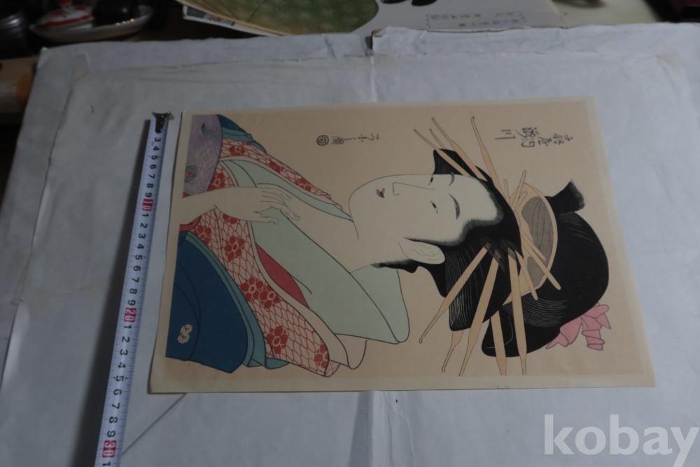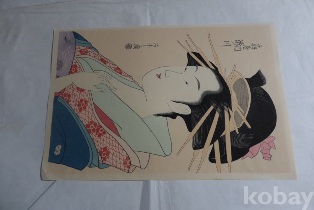 아름다운 일본 우키요에 목판화 임니다 소화기의 복각 목판화 이며 섬세 정교한 명작 임니다 화가의 의 낙관을 가진 명물 EISHI (1756 ~ 1829) Woodblock Print