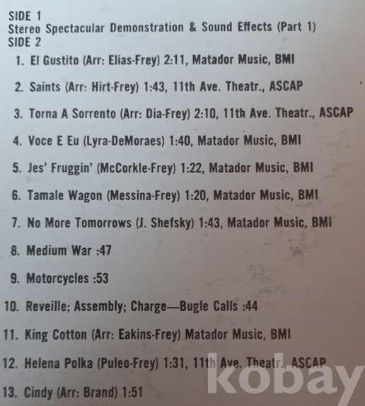 오랫동안 소장해온 데몬스트레이션 앨범 몇장을 골라서 올리고 있읍니다. 음향기기와 레코드 회사 등이 제작한 홍보, 사은, 증정. 비매품 앨피반입니다. 따로 수집해 봐도 좋을것 같읍니다. 이 음반은 미국 데몬스트레이션, 비매품반입니다. 상태는 사진을 아주 여러장 올렸으니 자세히 봐 주시고.. 직접 틀어보지 않았읍니다만 너무 좋아보입니다. 상당한 기간 공들여 수집했던겁니다. 아시겠지만 이처럼 한번에 만나기는 어려운 음반들입니다.