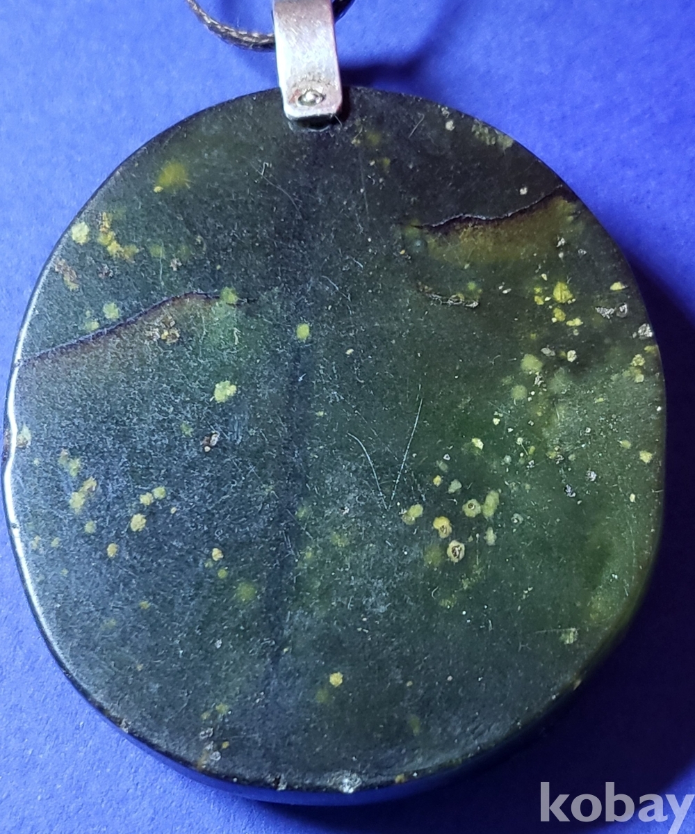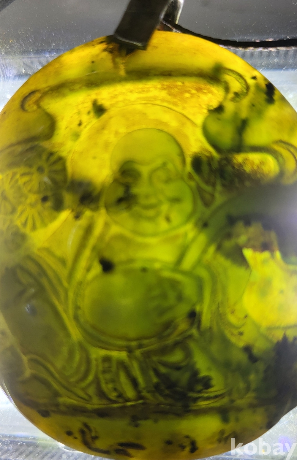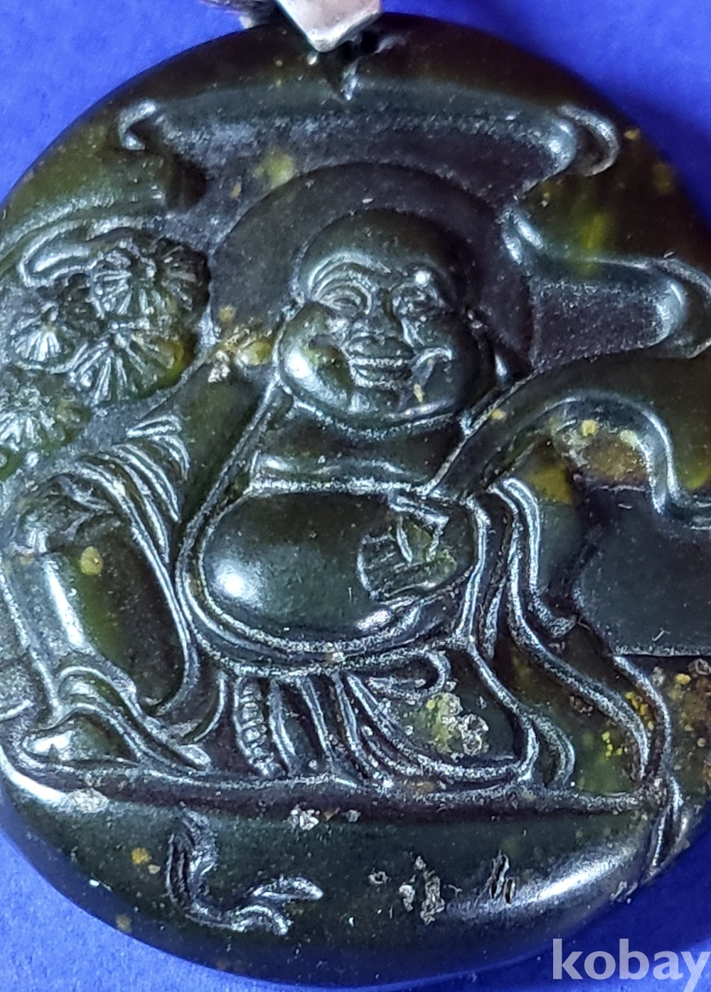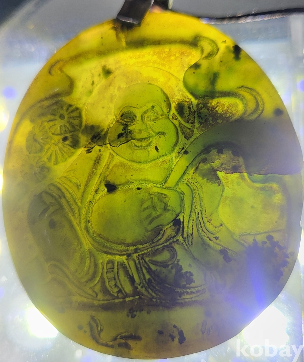 흑요석 (黑曜石)으로 조각된 포대화상(布袋和尙) 은(銀)고리가 장식된 팬던트입니다,
