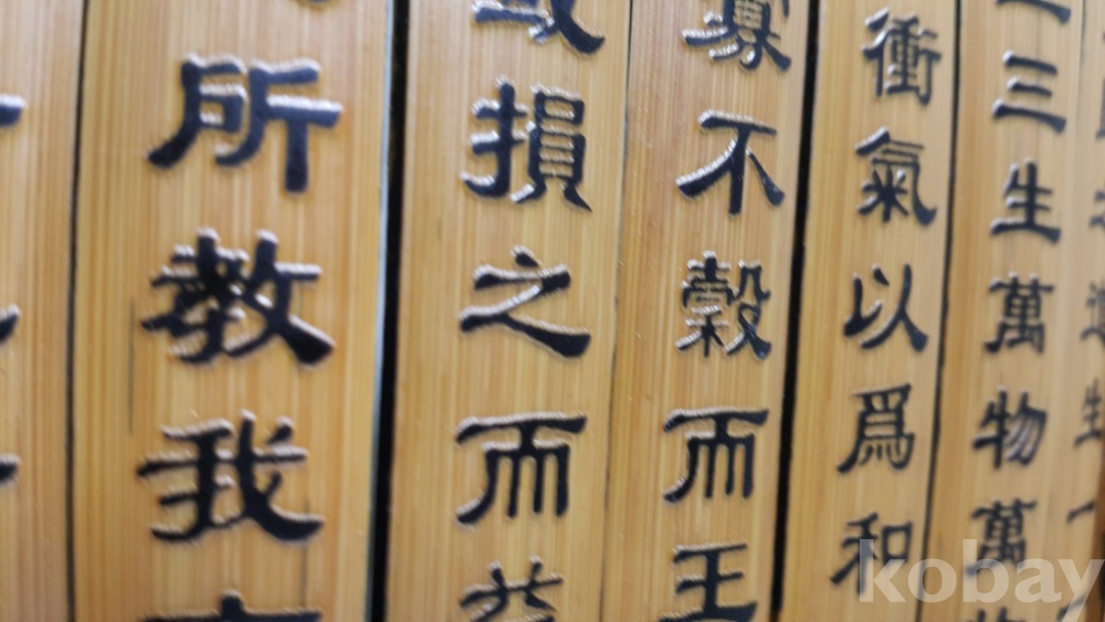 품질 좋은 대나무를 선별하여 일정하게 자르고 양각으로 한자를 양각으로 표현하였습니다