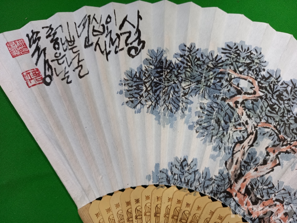 이 합죽선은 한국화가 벽강(碧江) 류창희 작가의 작품으로 류창희 화백은 원광대학교 미술대학 교수를 역임한 원로 화가로, 꿈속에서 얻은 영감을 화폭에 옮기는 '몽현주기화(夢顯宙氣畵)'의 창안자로 잘 알려져 있습니다. 대한민국미술대전 심사위원장을 역임했으며, 국내외에서 다수의 개인전과 초대전(400여 회)을 하였습니다.
