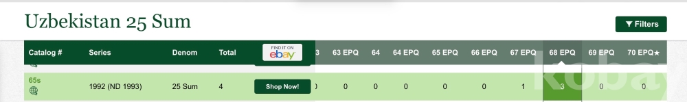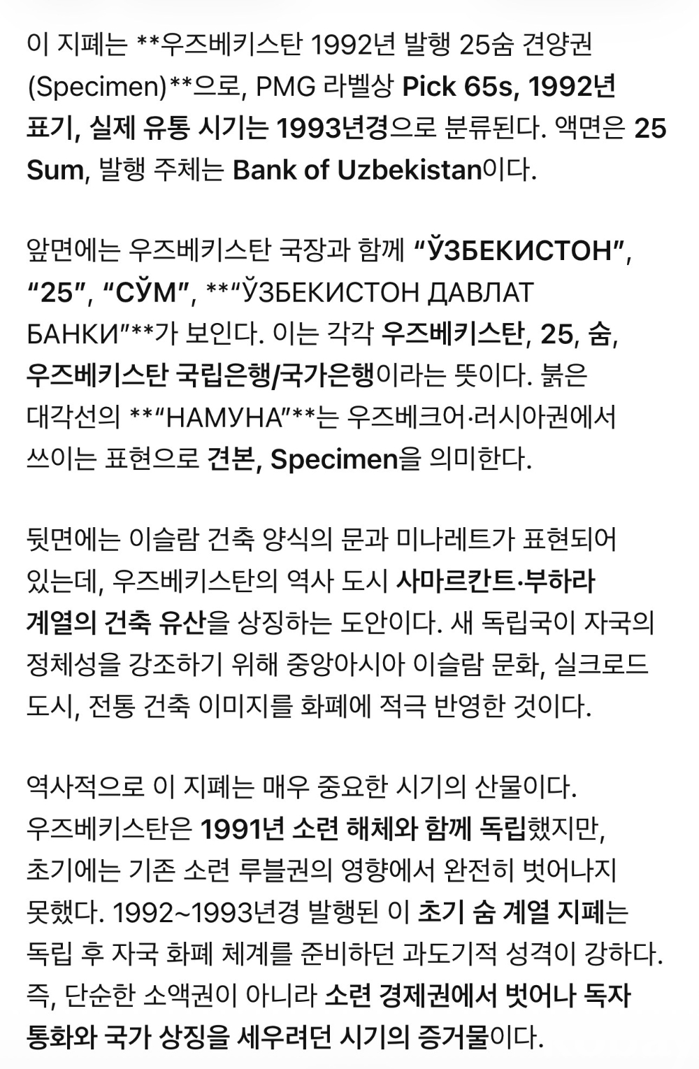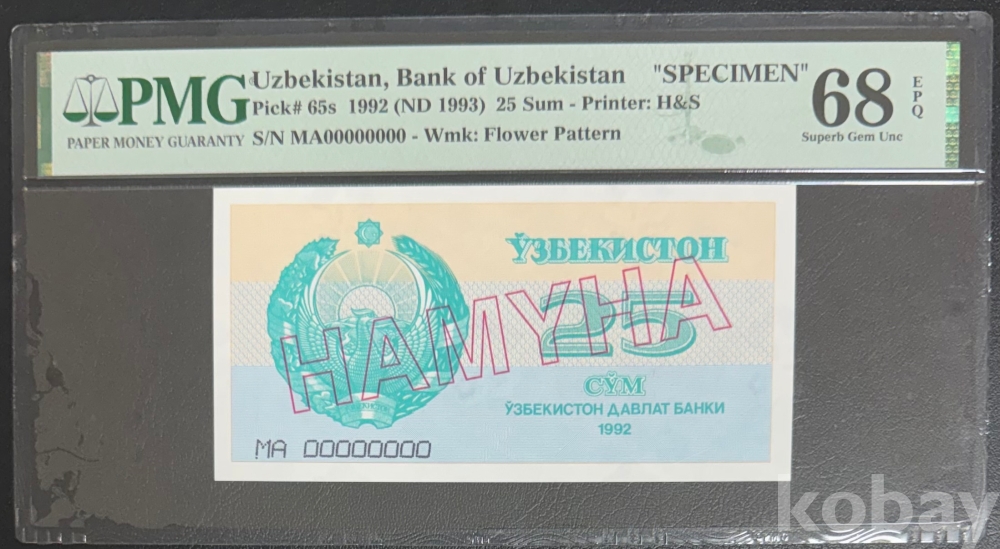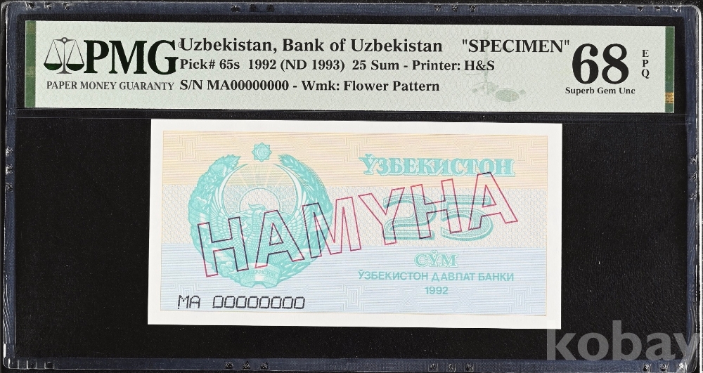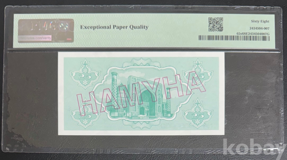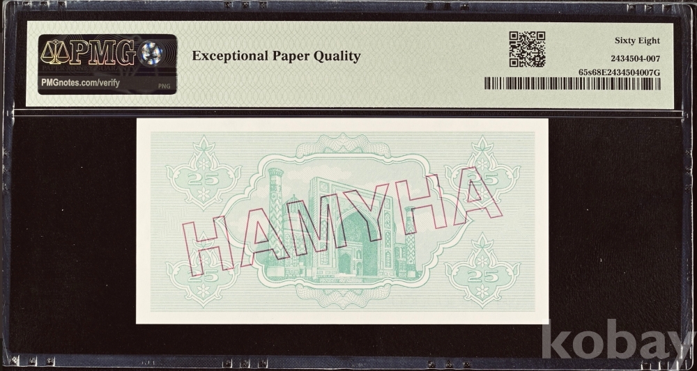 [희소지폐](견양권)(4개중 Top) 1992년 우즈베키스탄 25숨 견양권 PMG 68 EPQ