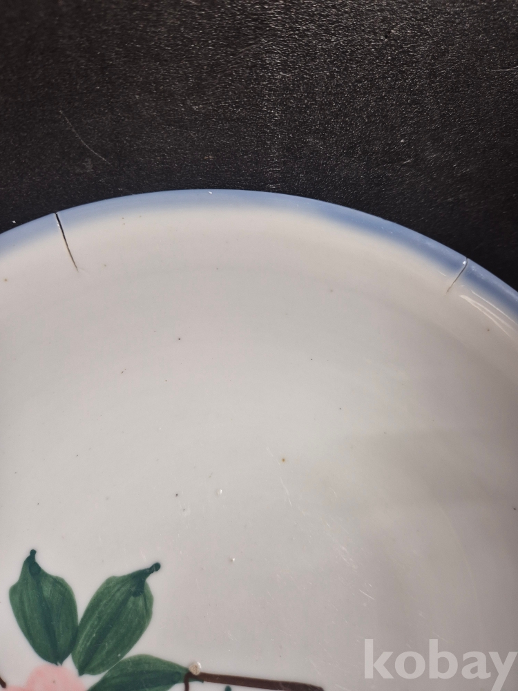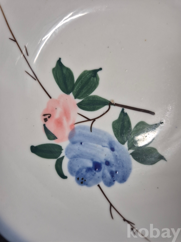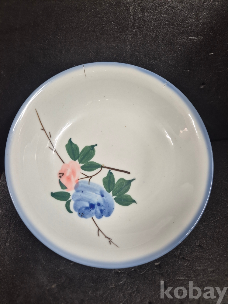 근대사기 기물로 자장면기는 깊이가 낮은 그릇으로 안쪽면에 손으로 기본 장미가 아닌 풍성한 꽃잎의 장미가 그려져 있는 인기품목 외사기 기물입니다