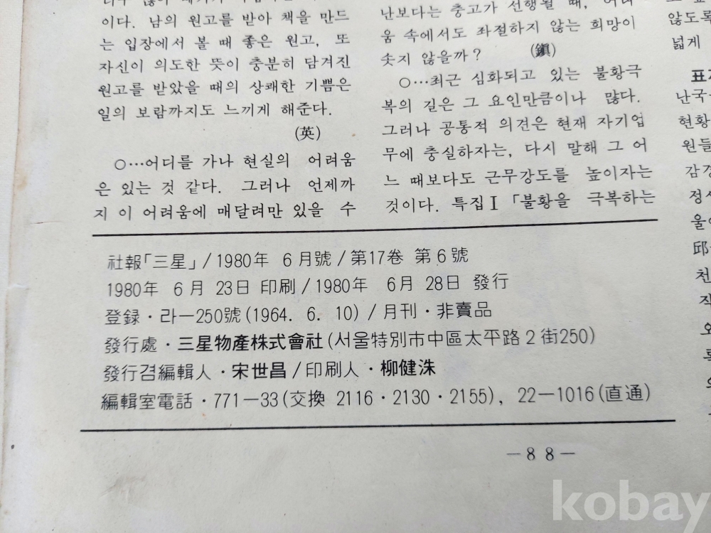 < '86.6월호 [ 삼성 三星] 사보 1권 >