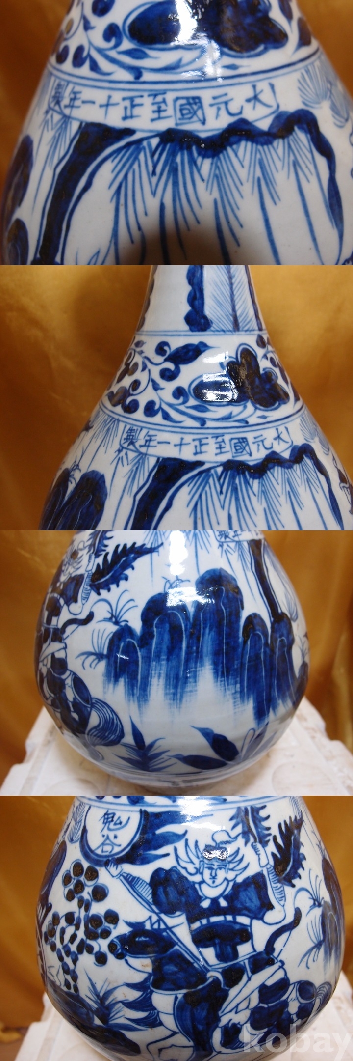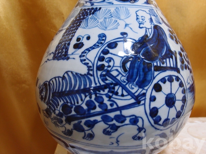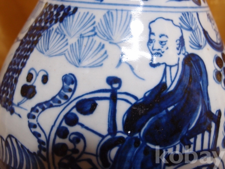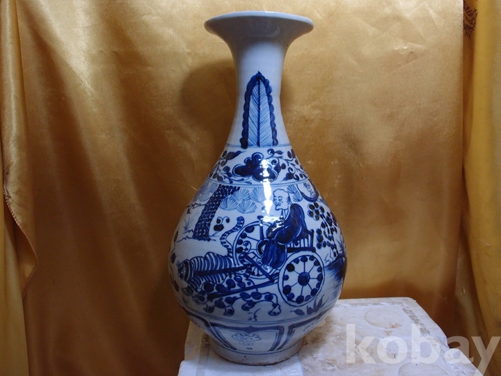 m-285.(대) 원대 귀곡자 하산도 청화백자 봉황파초문