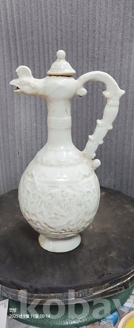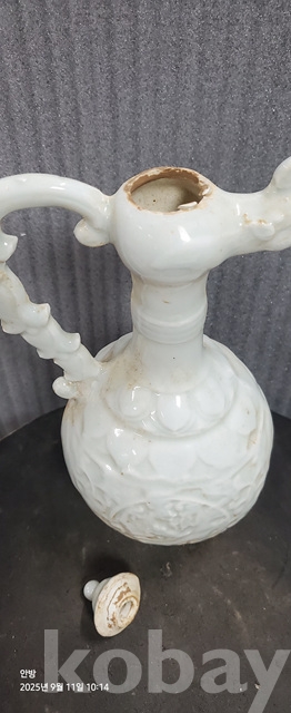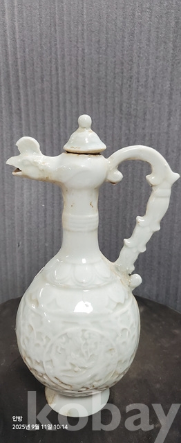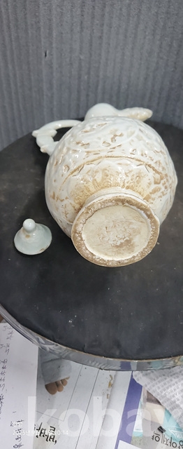 b-75.오래된 송연청자 당초문술주전자