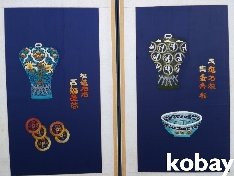 6폭 자수 병풍 입니다.