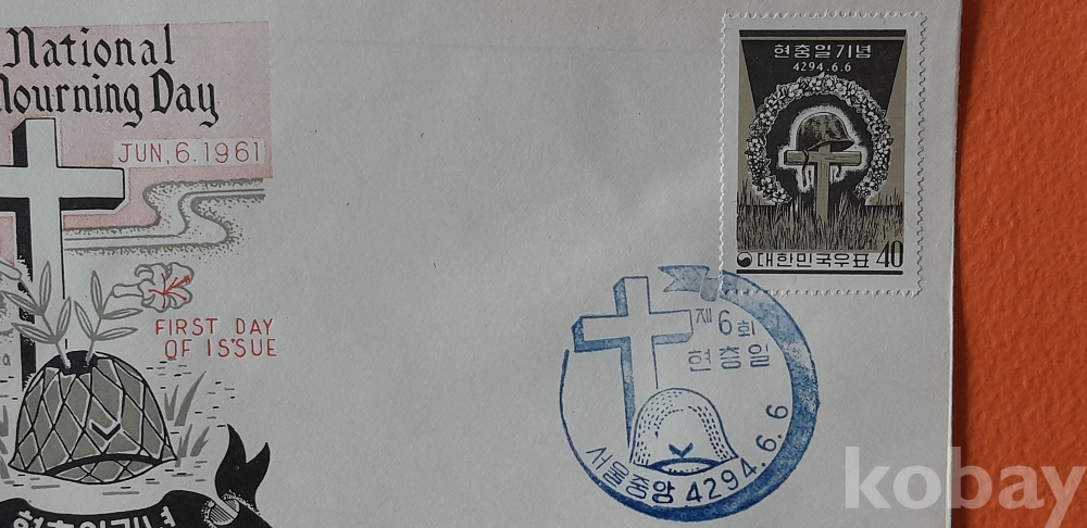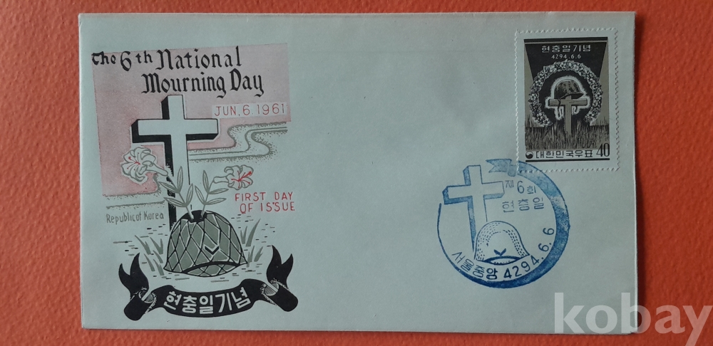 1961년 발행 제6회 현충일 기념 초일봉피 입니다.