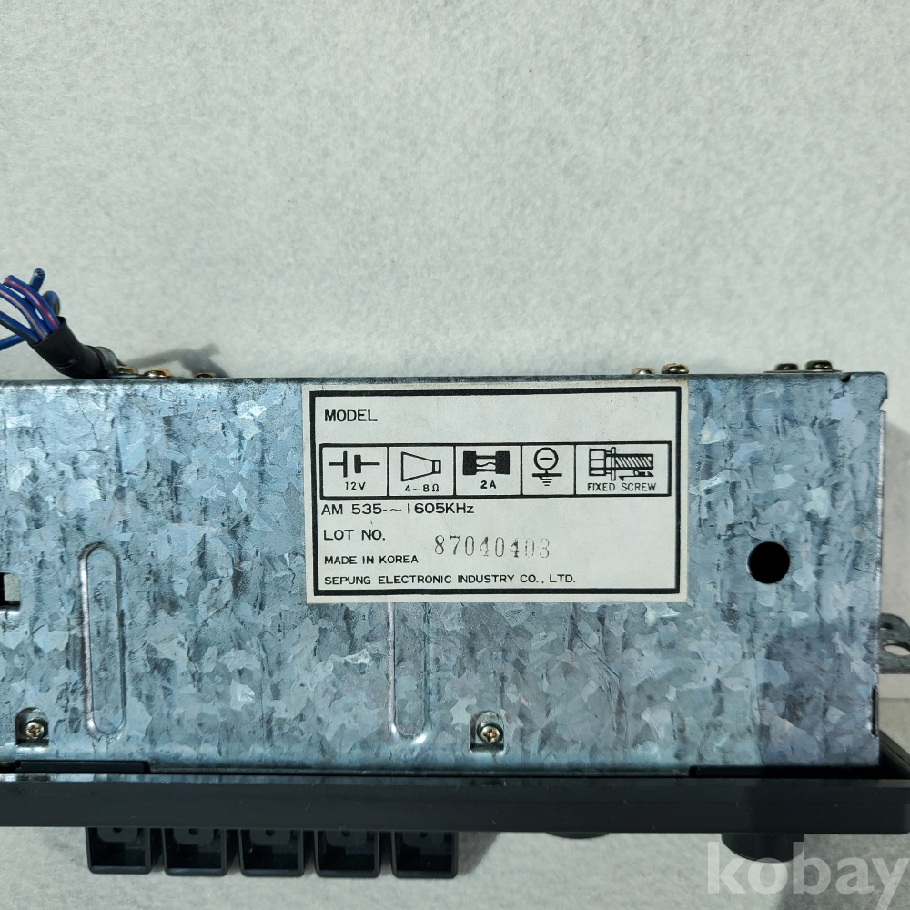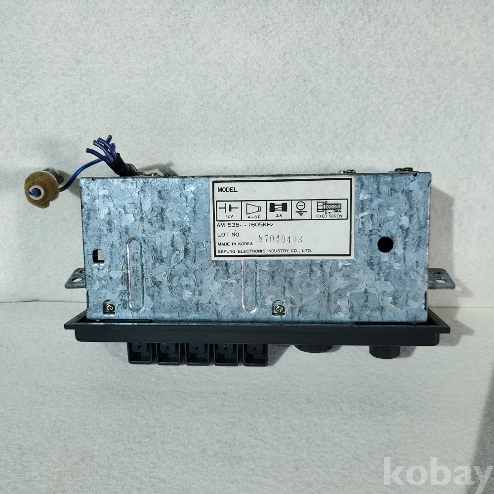 1980년대 후반, 대한민국은 이른바 '마이카(My Car)' 시대의 본격적인 서막이 오르며 거리마다 사람들의 꿈을 실은 자동차들이 활기차게 달리던 역동적인 시기였습니다. 본 제품은 기아자동차(KIA MOTORS)의 눈부신 도약기였던 1987년, 당시 차량 내부에 순정 부품으로 장착되었던 세풍전자(SEPUNG ELECTRONIC INDUSTRY) 제조의 AM 전용 카라디오입니다.