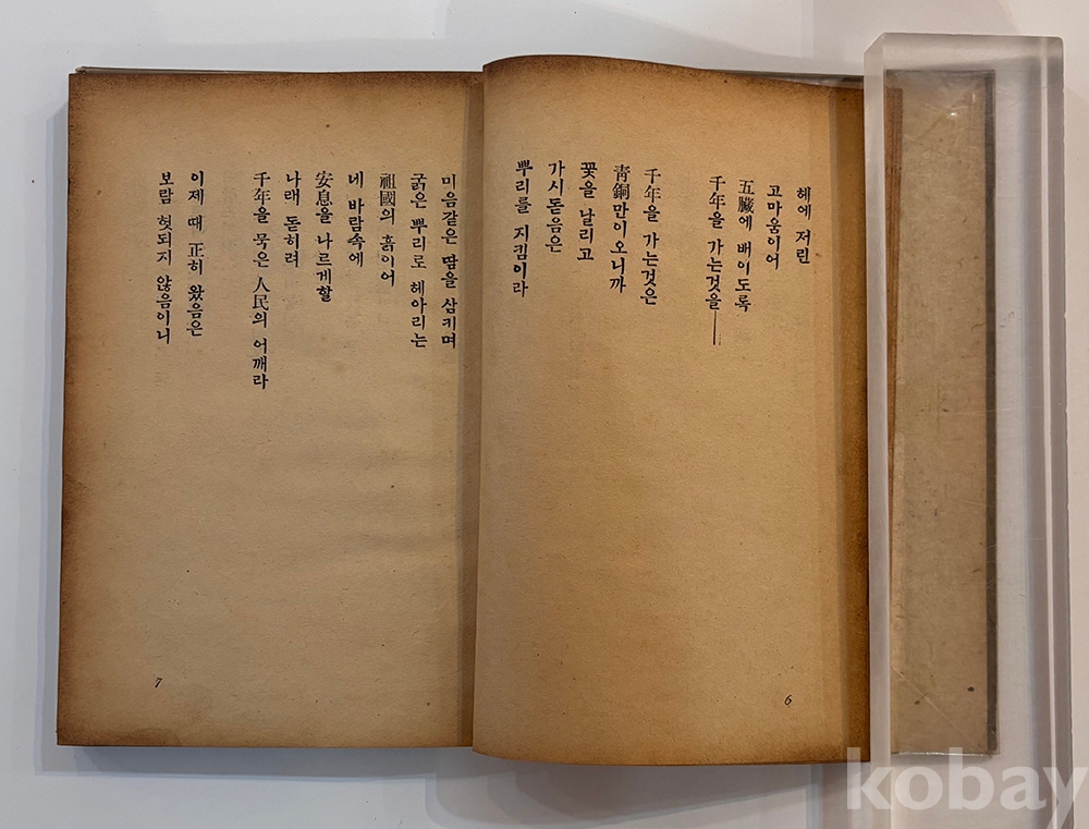 설 명 | 설정식의 제 2시집으로, 어머니와 누이에게 주는 헌사(獻詞)를 비롯하여 총 16편의 시를 싣고 있다. 컷은 월북과가 최재덕, 배정국이 장정을 맡았다. 책등 수리 및 비닐 커버로 수리되어 있고 책 뒷부분 갈라져 분리되어 있는 등 실물 확인 필요하다. | |||||