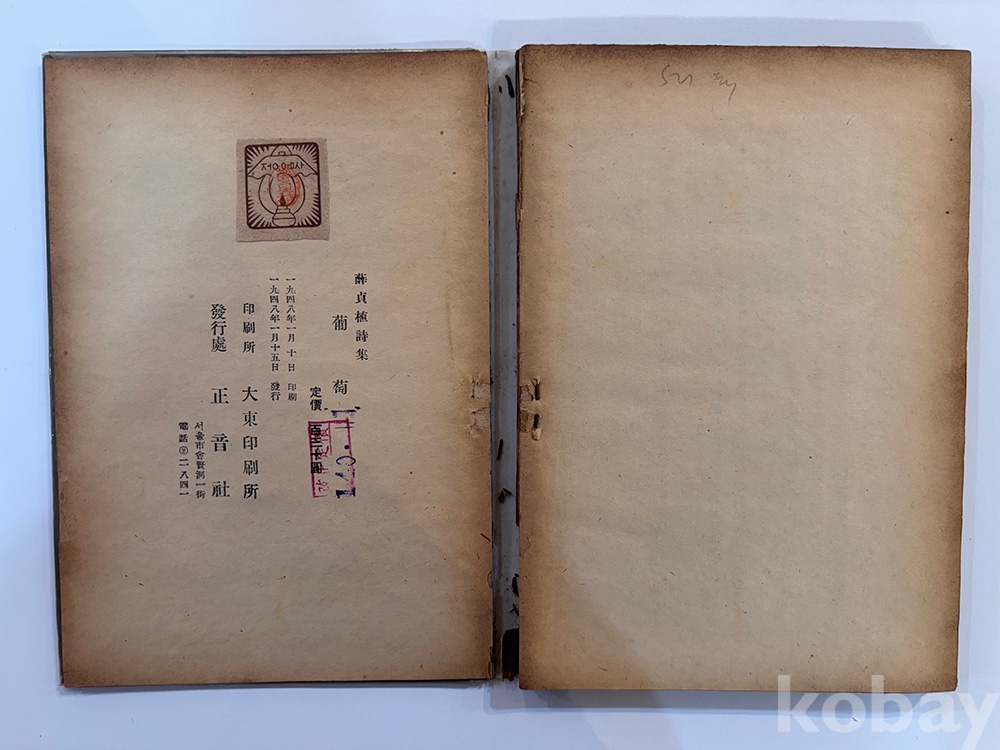 물 품 명 | <취향지가> [59] 1948년 발행, 배정국 장정, 설정식의 시집 [포도(葡萄)] 초판본 1책 | |||||