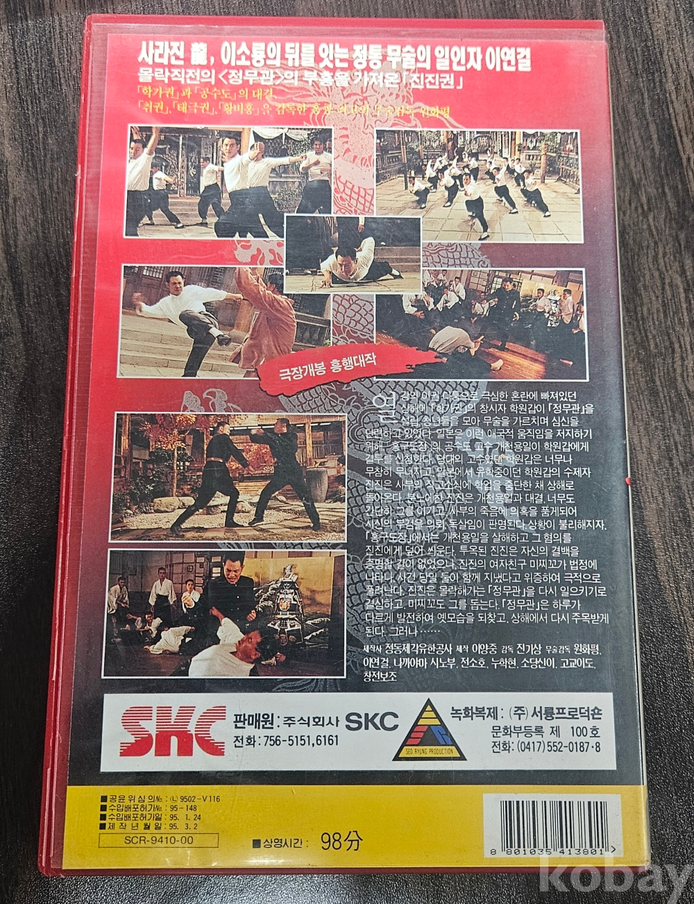 인기영화 이연걸의 정무문 이라는 타이틀의 영화 비디오 테이프 초반 입니다.!!