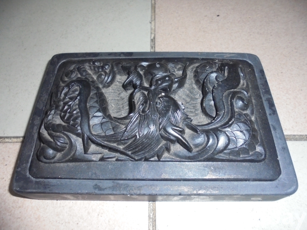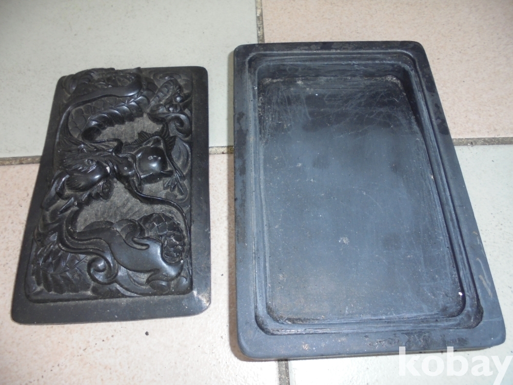 뚜껑이 용손잡이로 붙디친데없고 완연한 작아 이동용으로 사용함직한 마찔한 오래된 돌벼루 가로세로높이 17 x 12 x 4 cm 외사진참조