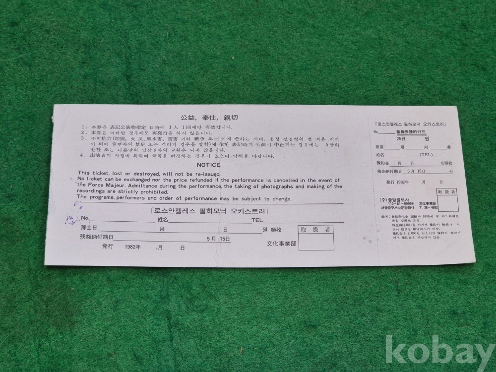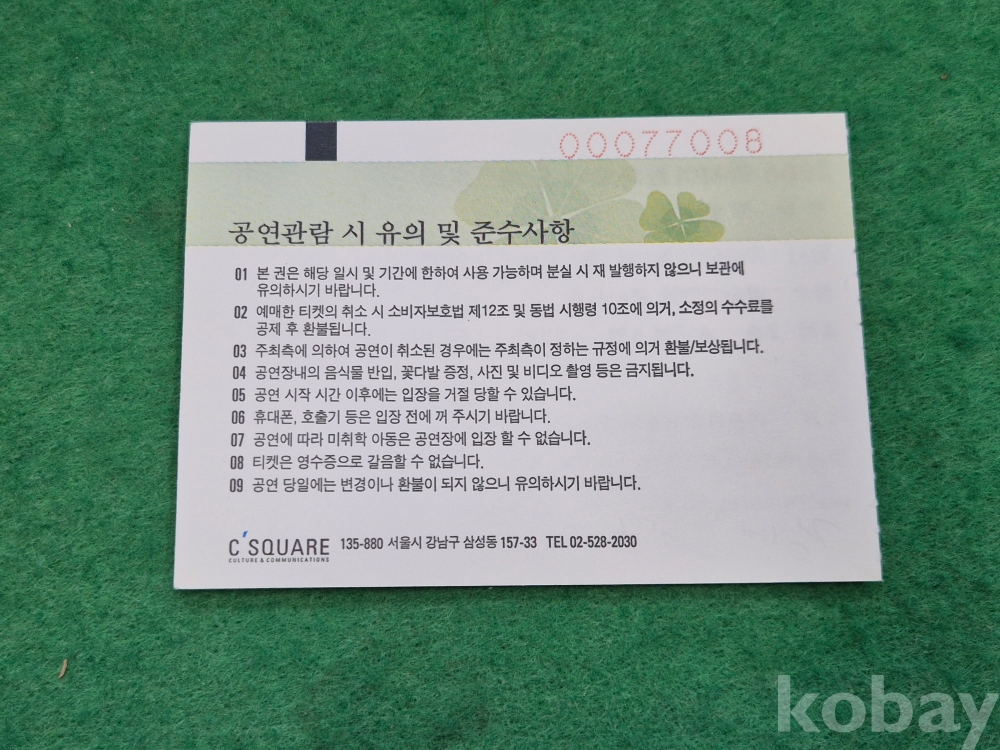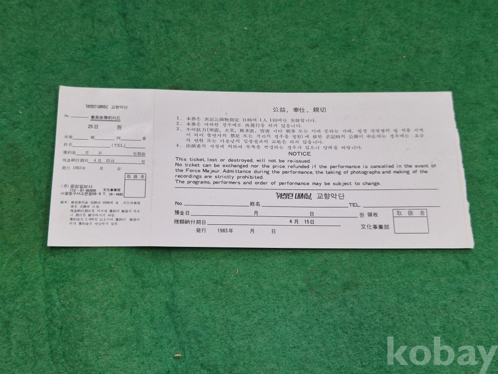 1]. 품명 : 음악 관련 각종 입장권 11매 일괄