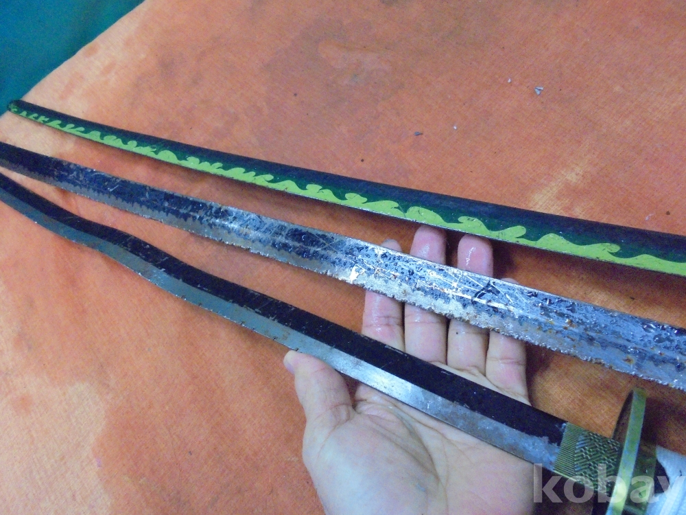 왕건이가 사용 하던 싸움용칼인데 많이 휘임이잇읍니다