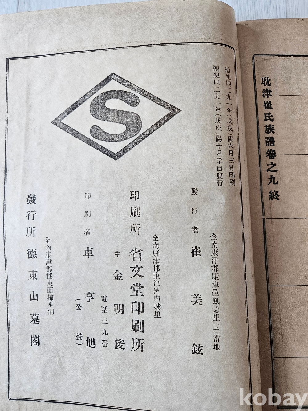 탐진최씨 족보 1~9 수권1권 중 8권낙권