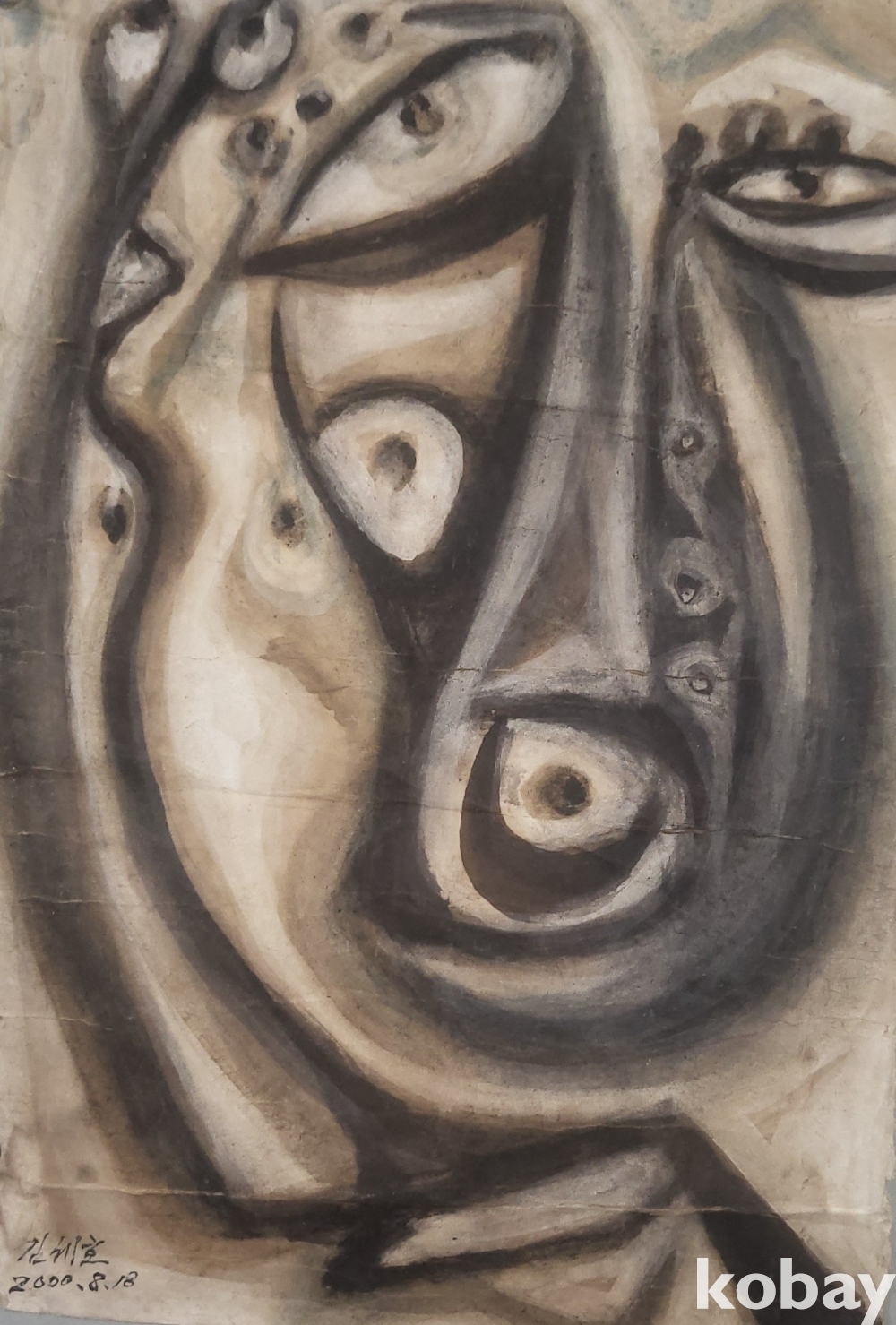 유명화가 김세호 作 두터운 판지 위에 그린 추상화입니다,