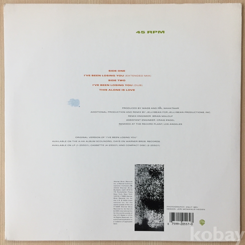 4. A-ha – I've Been Losing You / Warner Bros. Records – 920 557-0 / 1986년 / 유럽