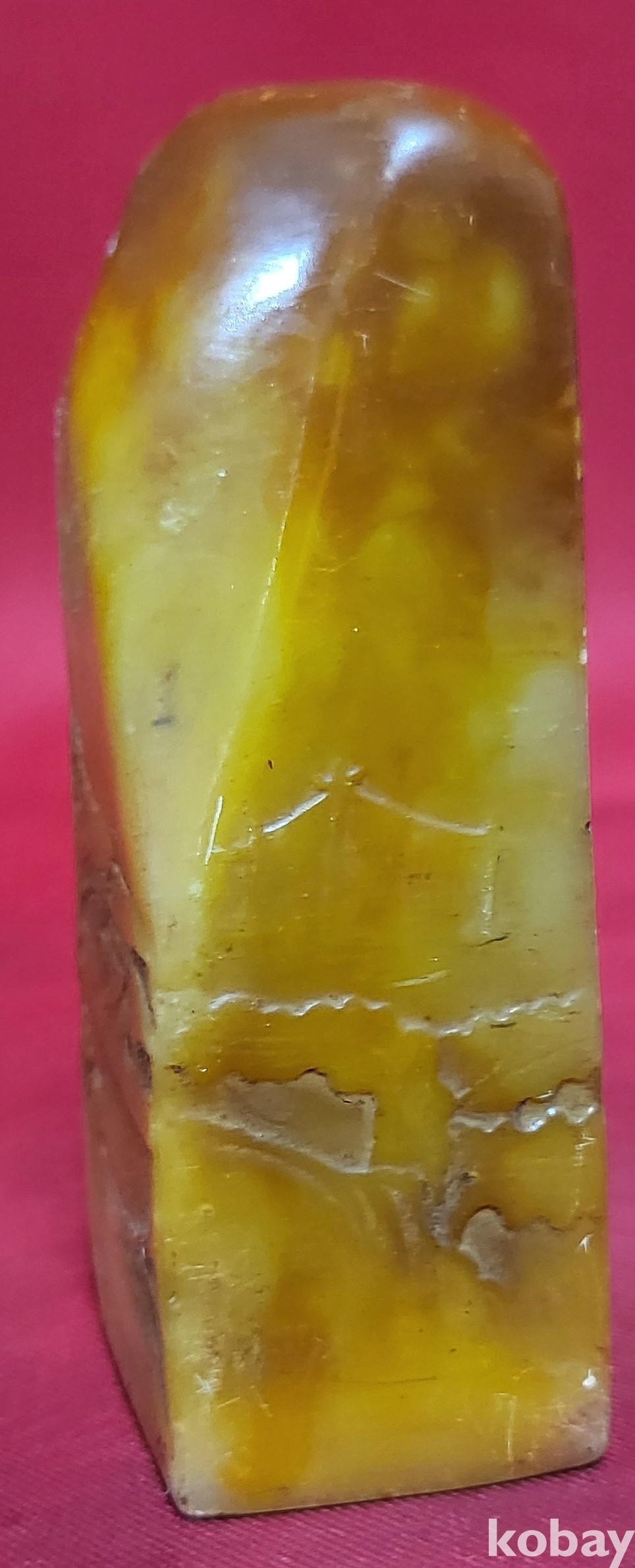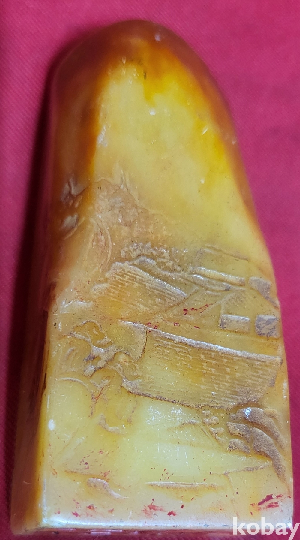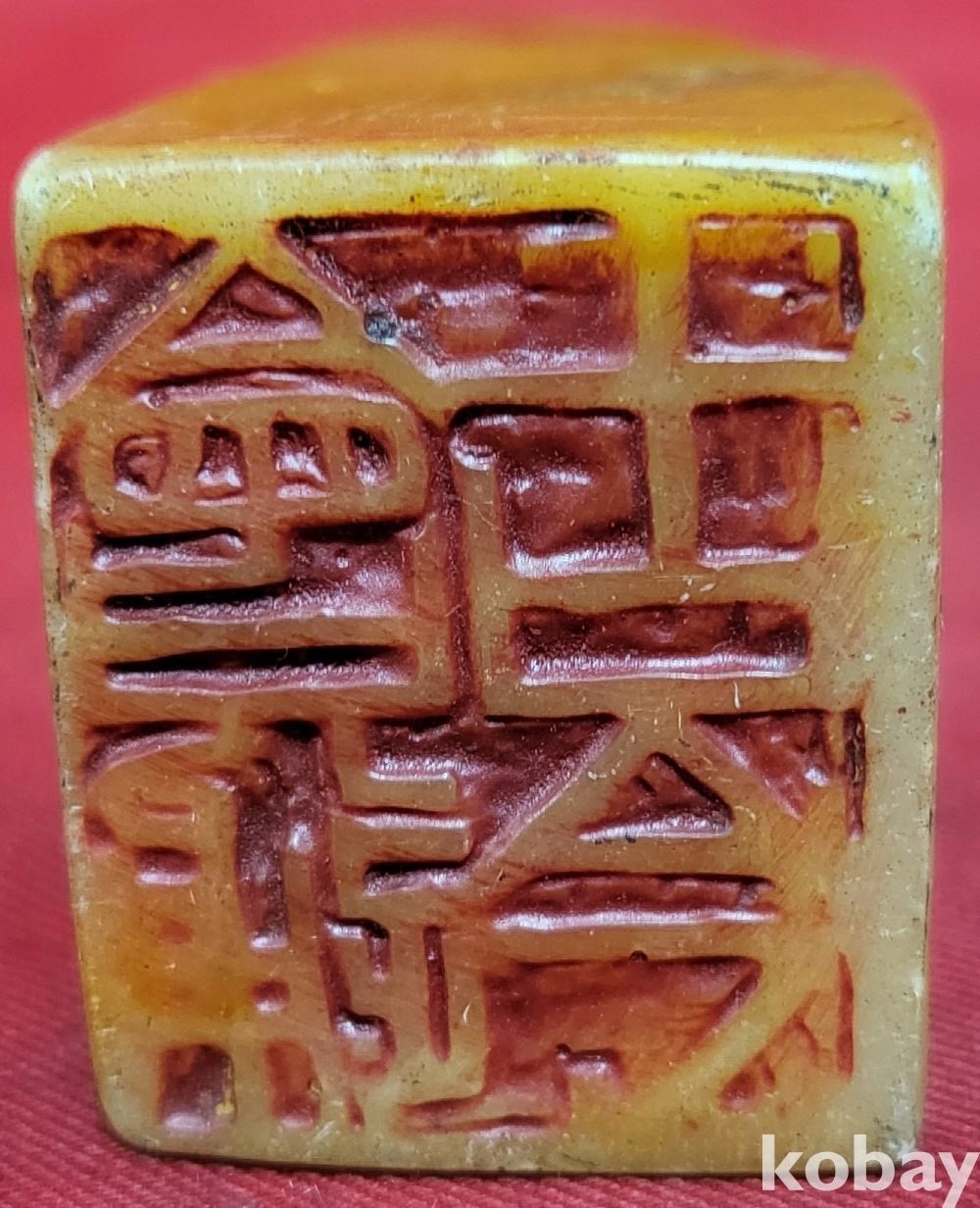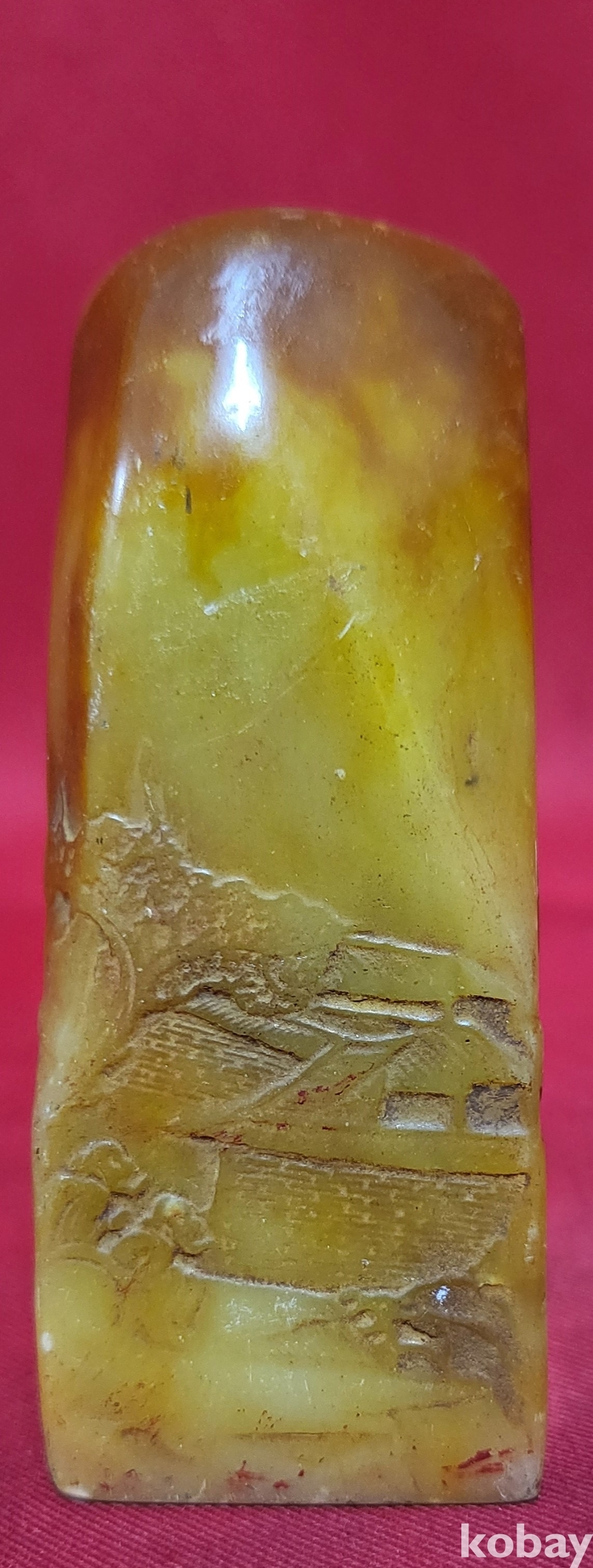 황옥으로 만든 산수와 가옥 문양 사용제 도장입니다,