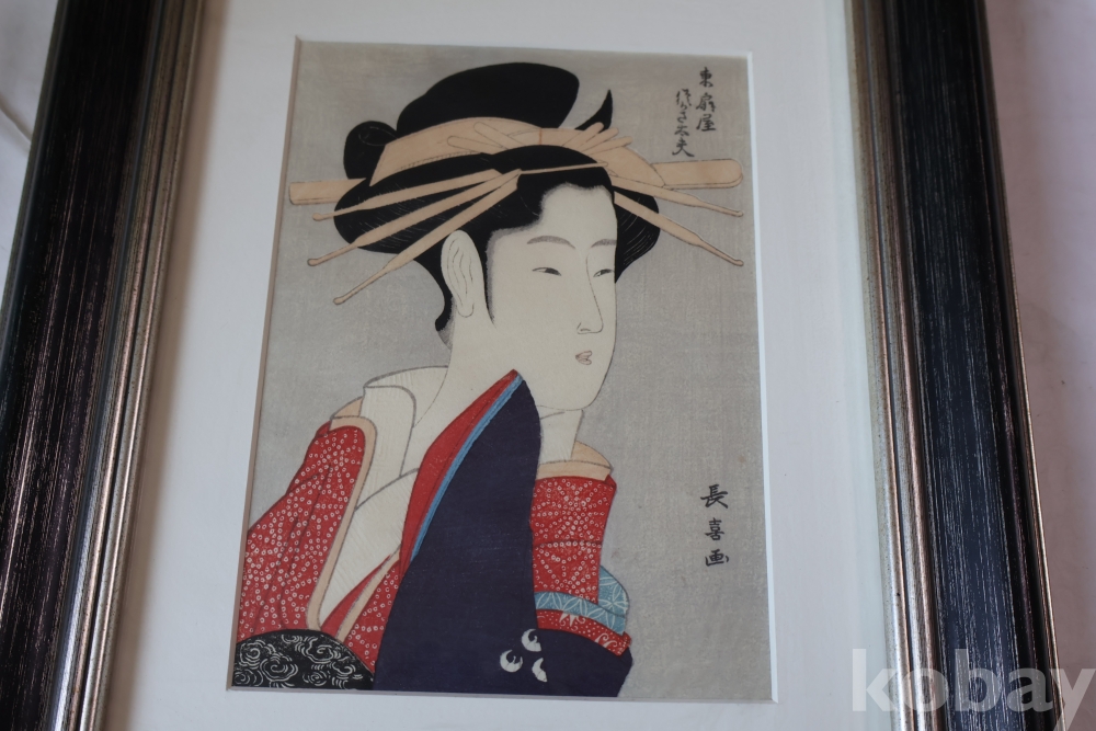소화기의 목판화 이며 고급 이태리 액자를 가진 명작 임니다 초기 일본 목판화의 대가 쵸기의 후탁 목판화 임니다 사진 참조 하세요