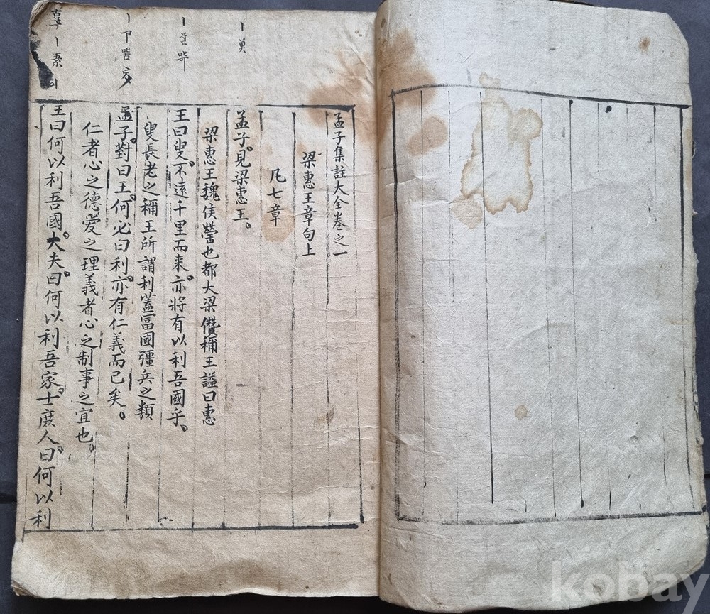 설명: 맹자의 원문과 함께 송나라 주희의 주석(집주), 그리고 여러 학자들의 설을 모아 집대성한 책입니다.